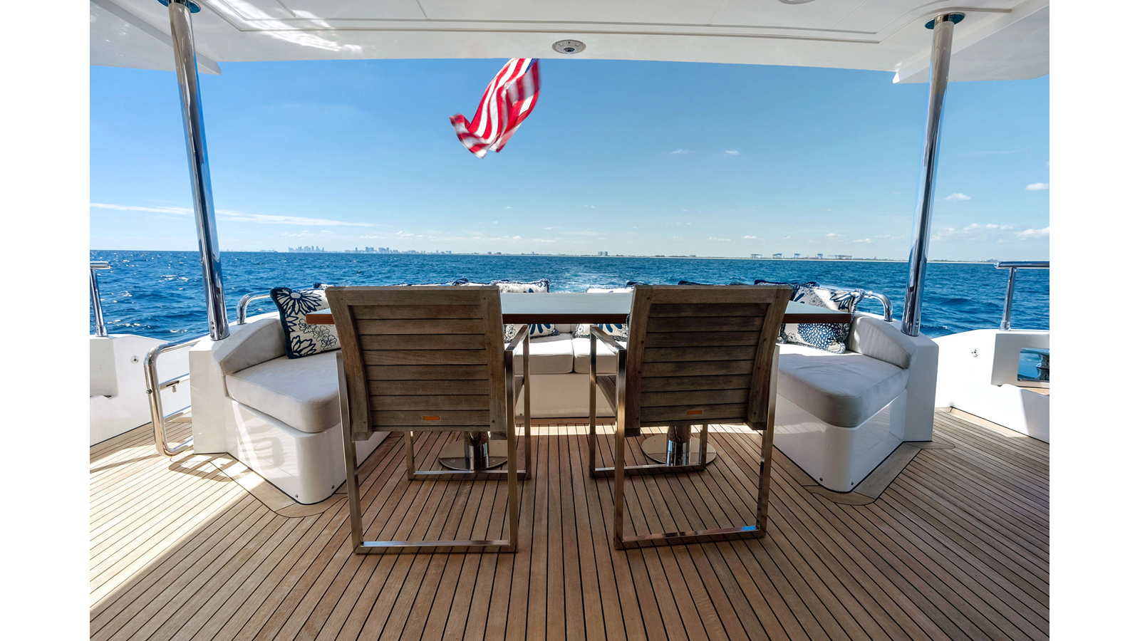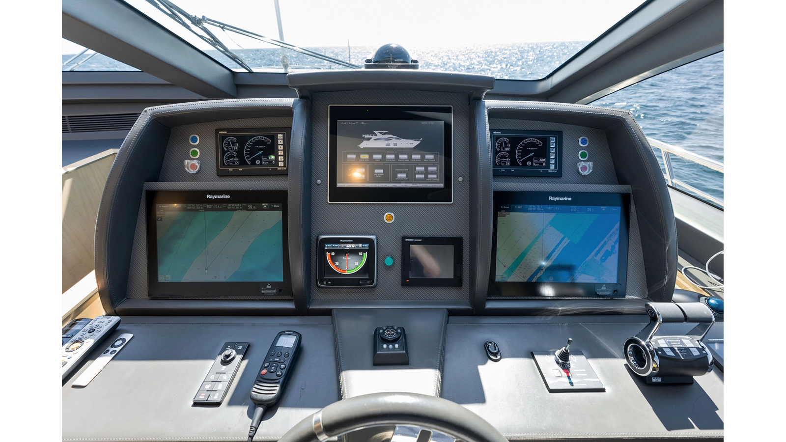 - LED spotlights recessed in the fiberglass on the aft flybridge in lieu of the spotlight.