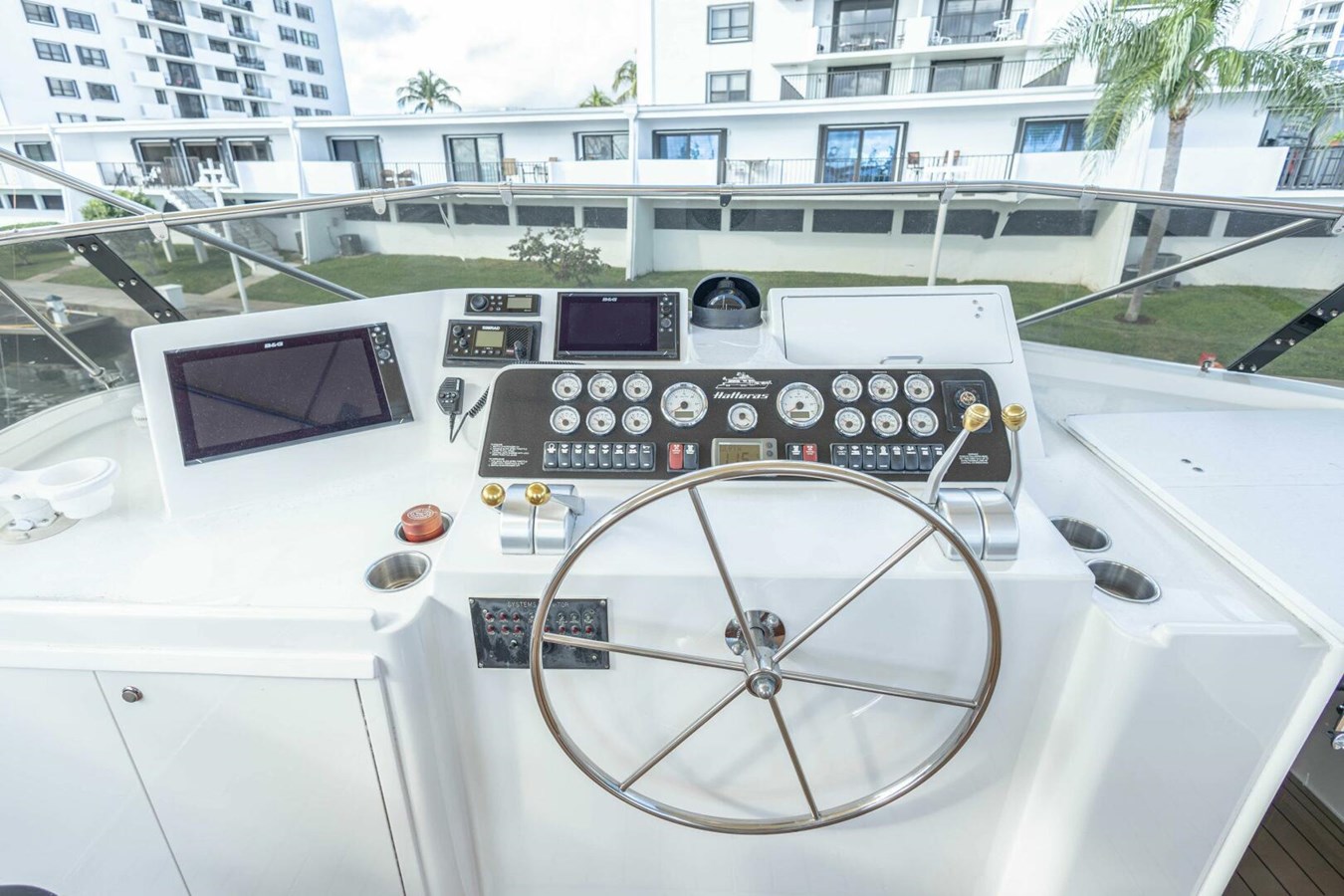 - Seating: Double helm chair, aft of helm to port and starboard.