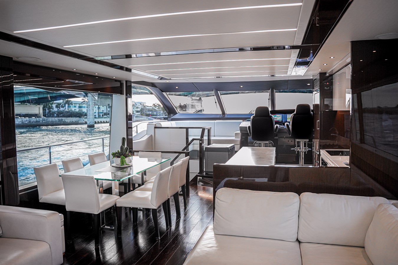 Not only does this model cut an impressive silhouette on the horizon, but an expanse of glass and sunlight also welcomes you onboard the 76 Yacht, and the main deck allows you to entertain with an almost 360-degree view of your surroundings. For ‘al fresco’ life, this flybridge yacht provides unprecedented levels of space and flexibility to suit owner needs.