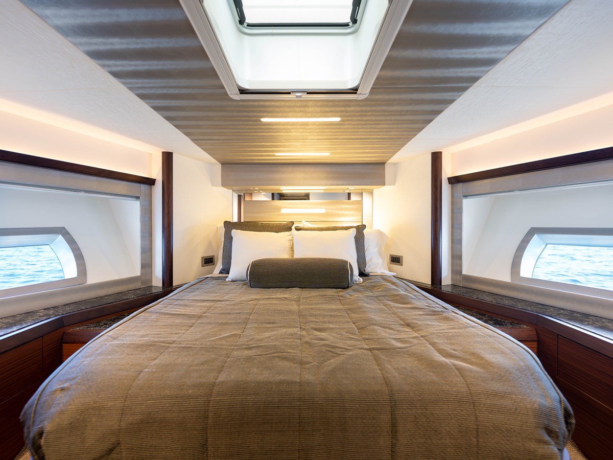 Center King berth with upholstered headboard.