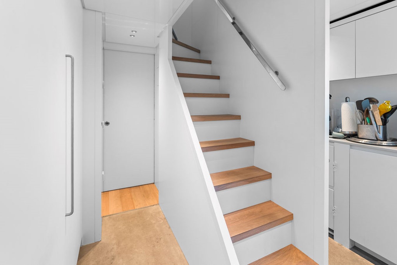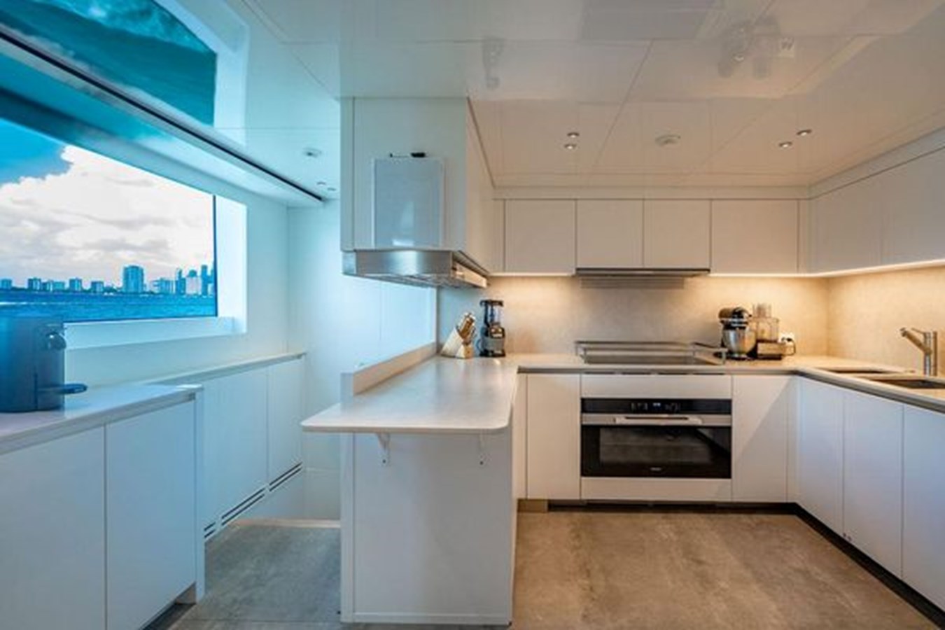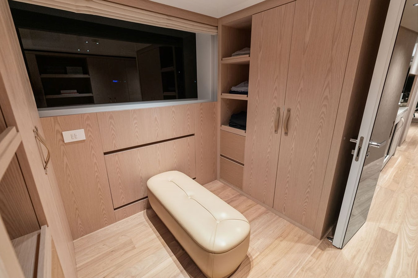 Step inside and you are welcomed by a custom interior by Marty Lowe, thoughtfully curated to feel both contemporary and timeless. Natural textures, bespoke furnishings, and a calming, sophisticated palette create a warm residential atmosphere, one that feels instantly inviting and entirely unique. This is a yacht designed to be lived on, not just admired.