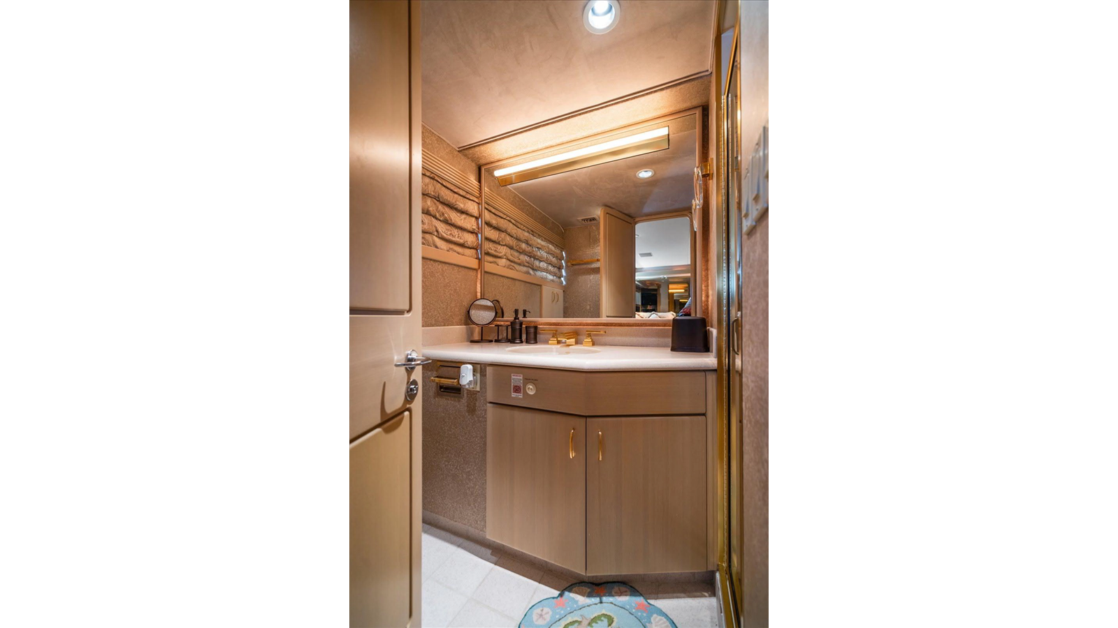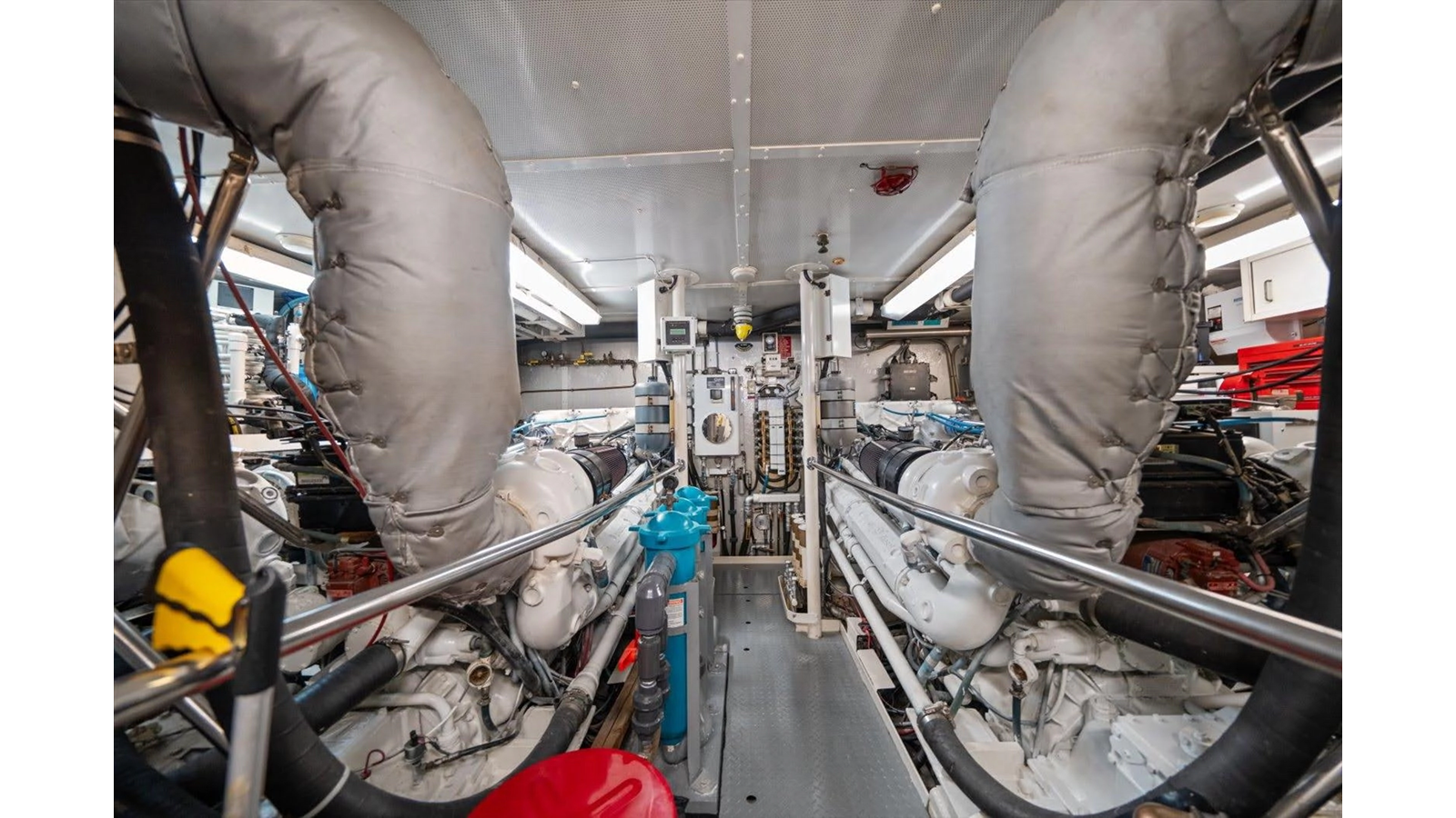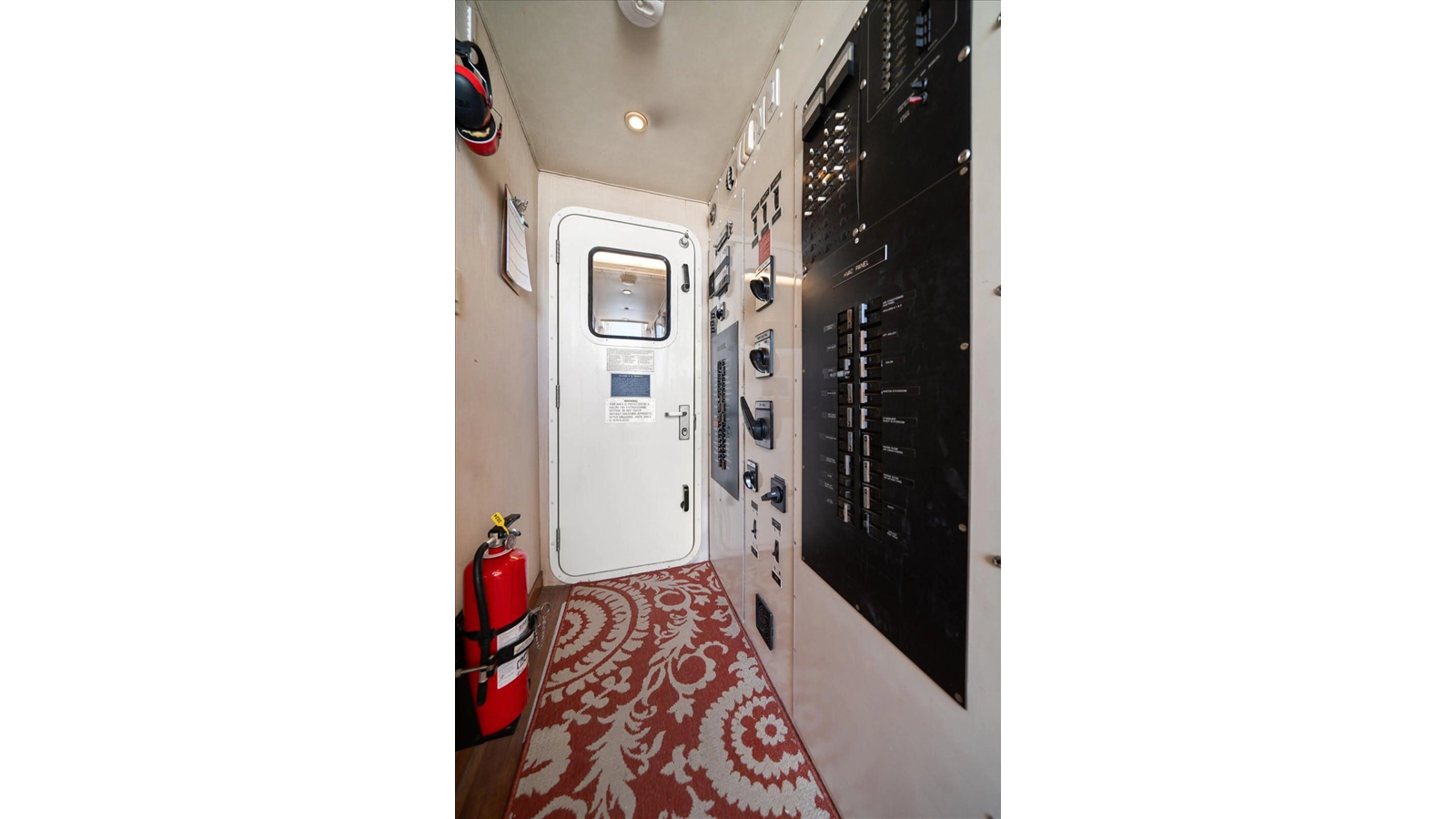 Aft on board “Think B.I.G.”, you will find access to the spacious engine room and crew quarters off the cockpit meter door hatch. Upon entering you will find 2 crew staterooms to port, a single birth (full bed) and to starboard, a double birth (twin beds), total of 4 crew sleeping quarters. A single head, port side is shared with a washer/dryer (separate), refrigerator/freezer and a microwave. Laundry (Crew Quarters / Forward Guest): Two (2) Clothes dryers; Two (2) Clothes washers