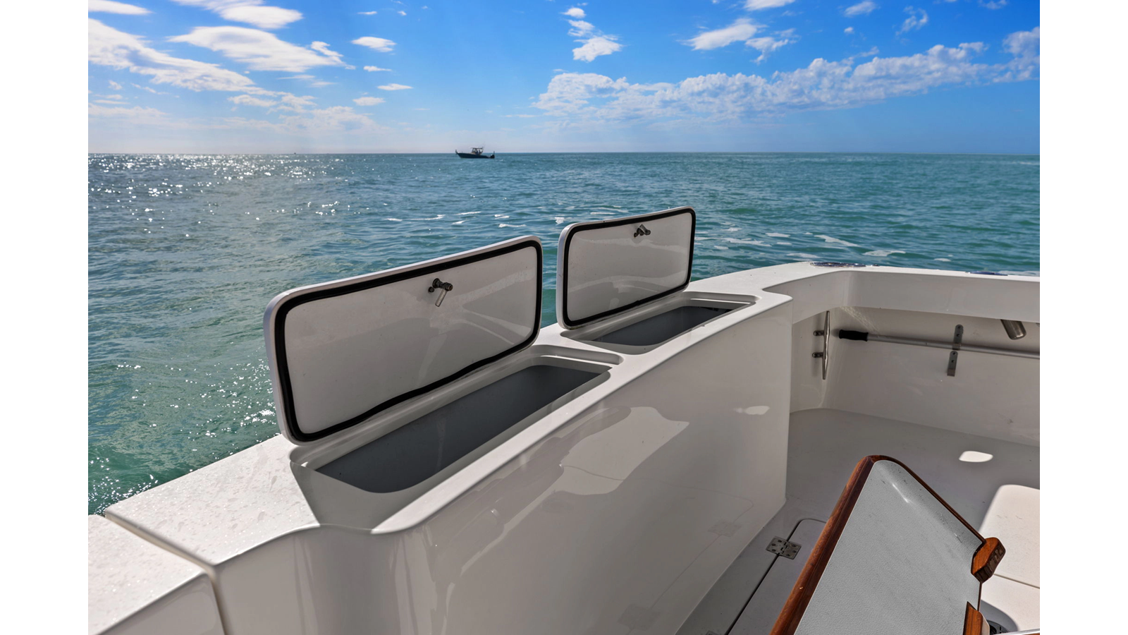 - Live Bait Well with "Calming Blue" Gel-coat and LED Light