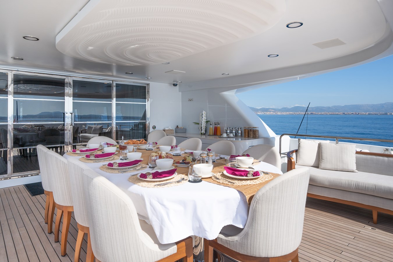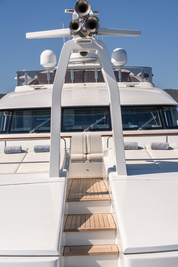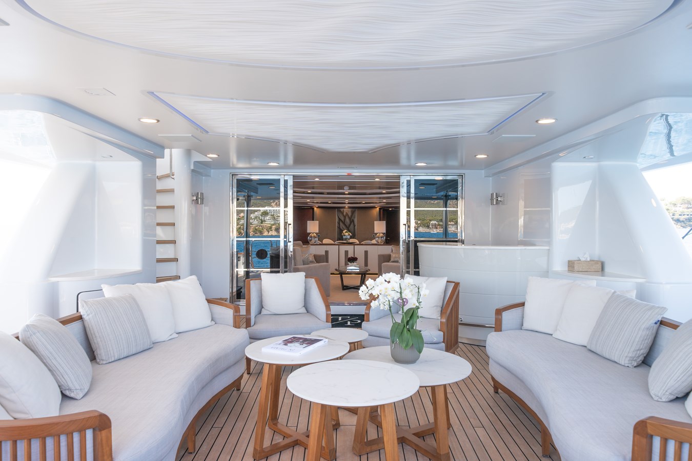 Her expansive decks are perfectly suited for both relaxation and entertaining, highlighted by a reimagined sundeck featuring a bar and generous shaded areas. Inside, sophisticated materials and refined details create an atmosphere of timeless elegance throughout.