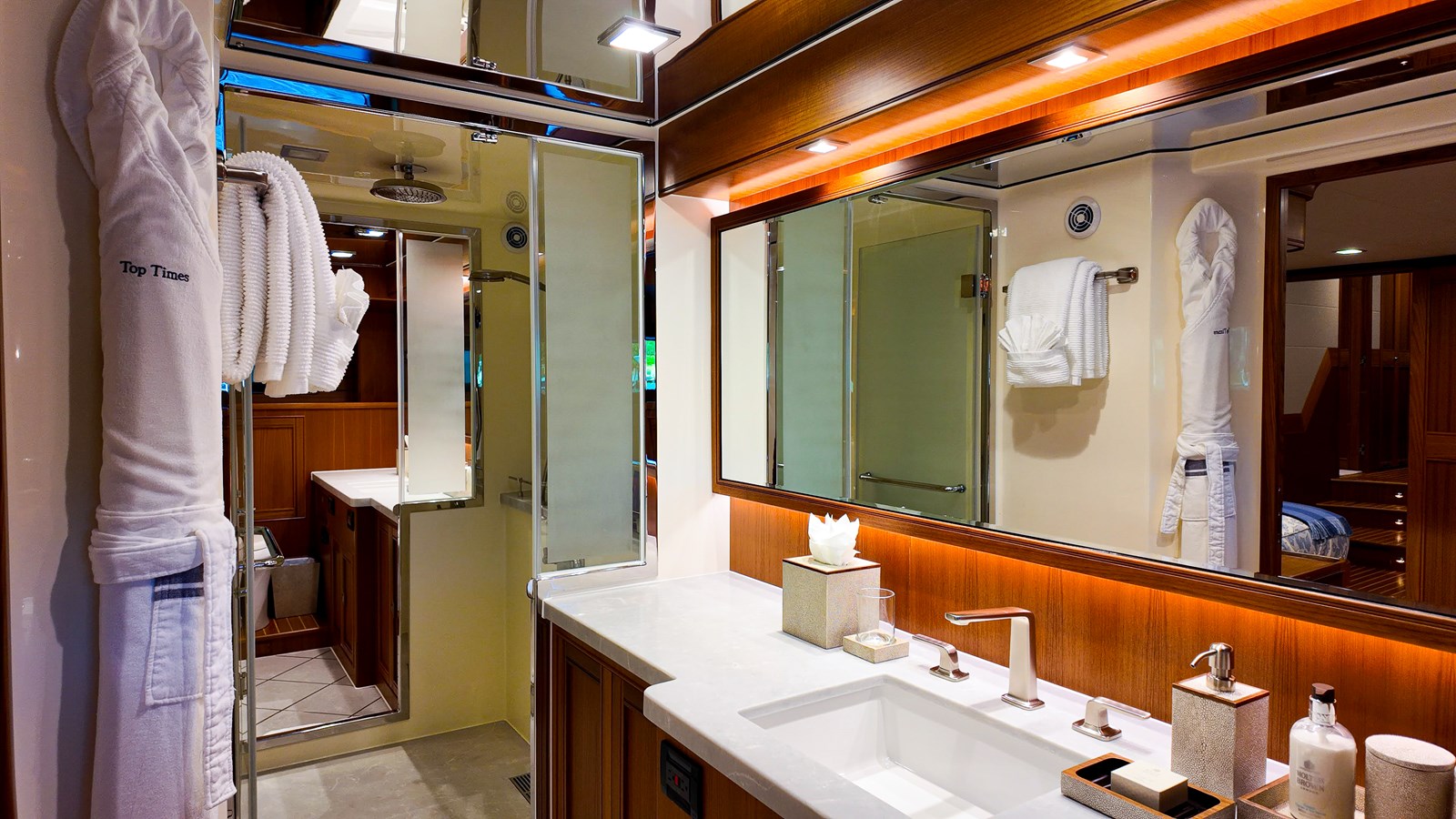 Introducing the stunning 2022 Marlow Voyager Series TOP TIMES, a remarkable tri-deck motor yacht that combines elegance and performance. With an impressive overall length of 102 feet, this vessel is crafted from durable fiberglass, ensuring both strength and beauty on the water. Powered by robust Caterpillar C32 engines, delivering an exhilarating 3800 horsepower, the yacht achieves a cruising speed of 13 knots and a maximum hull speed of 22 knots, making it perfect for adventurous voyages. Accommodating 4 guest cabins and 6 heads, the interior is designed for comfort and luxury. Notable features include joystick control for effortless maneuvering and an electric windlass for convenience. The Marlow Voyager Series invites you to explore the open seas with confidence and style. Experience the perfect blend of sophistication and performance aboard the TOP TIMES.
