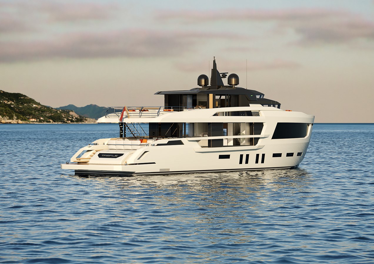 The vessel will be equipped with a transom door hinged at the top and hydraulically operated.