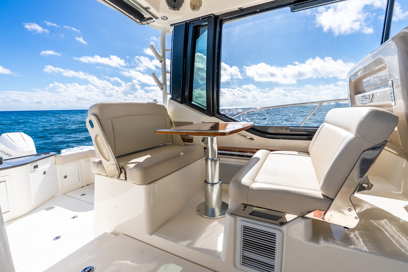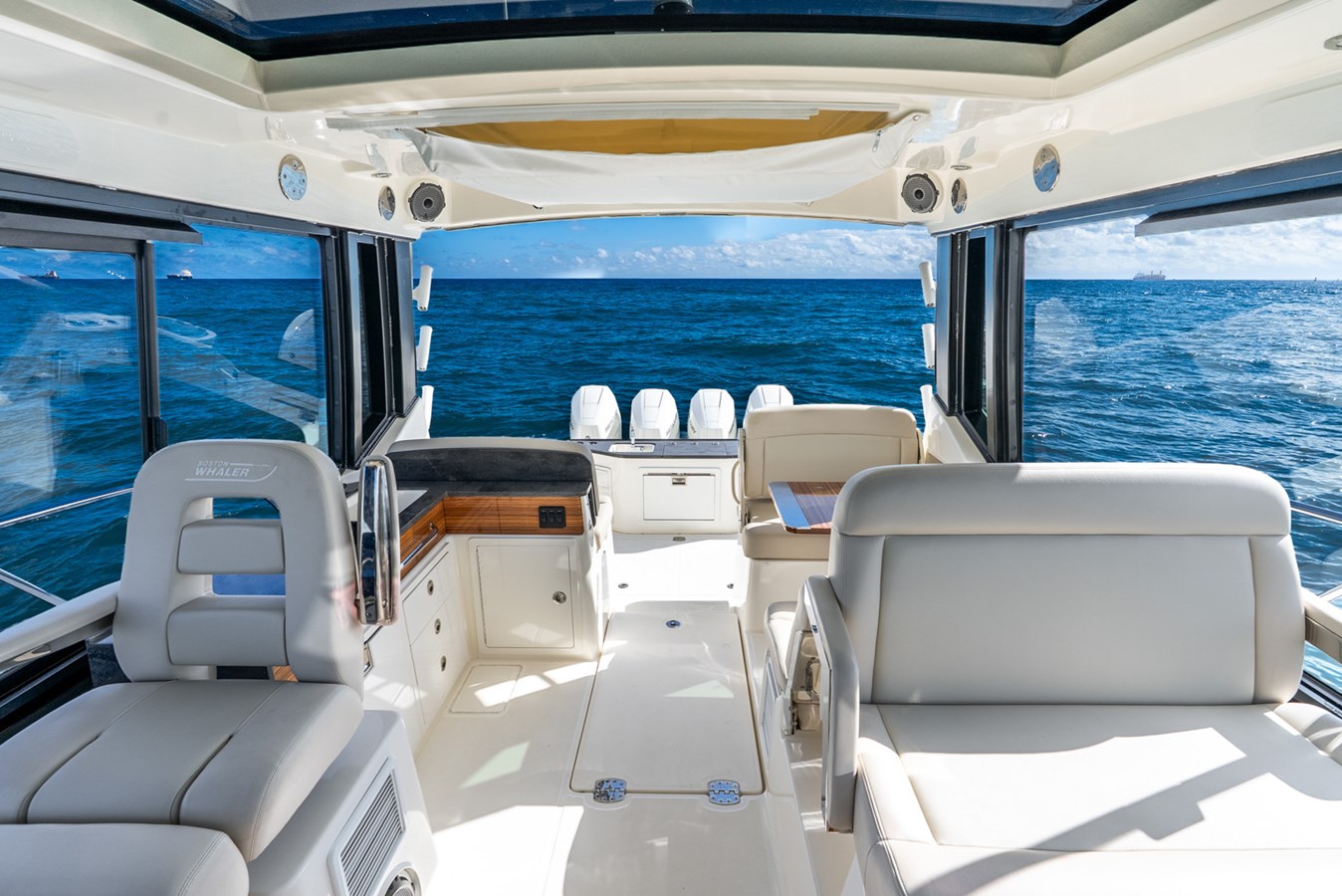 - Dive door (molded fiberglass boarding door on port side with removable stainless-steel dive ladder with dedicated storage in stern seat)