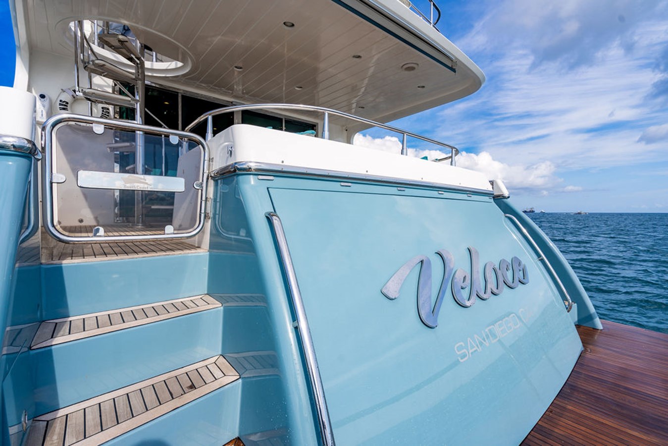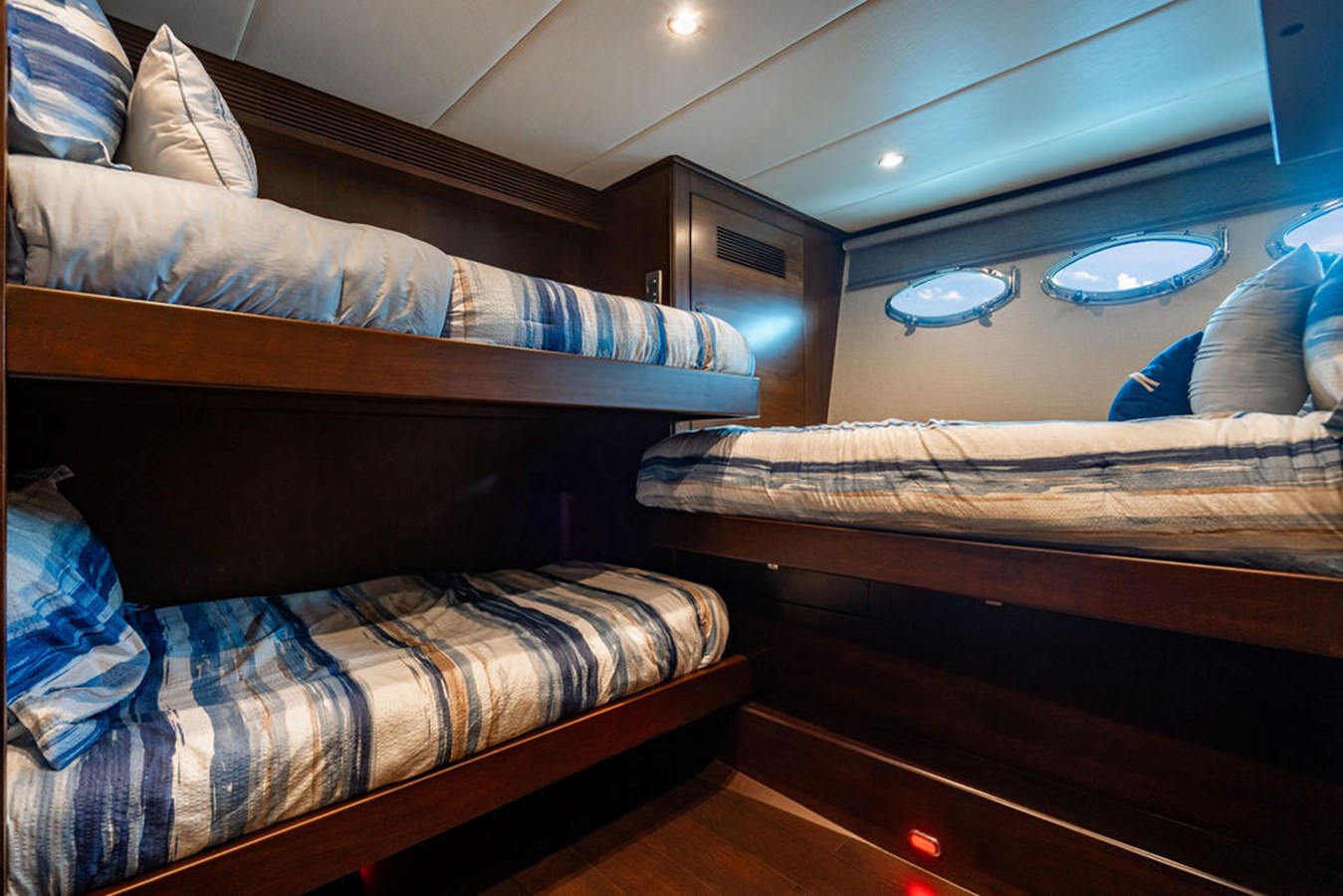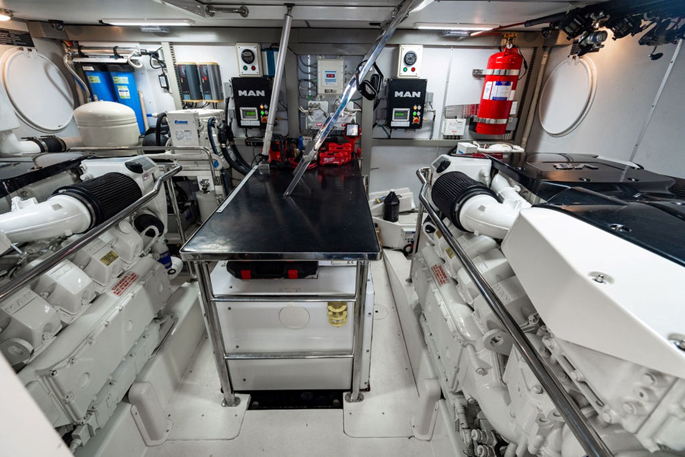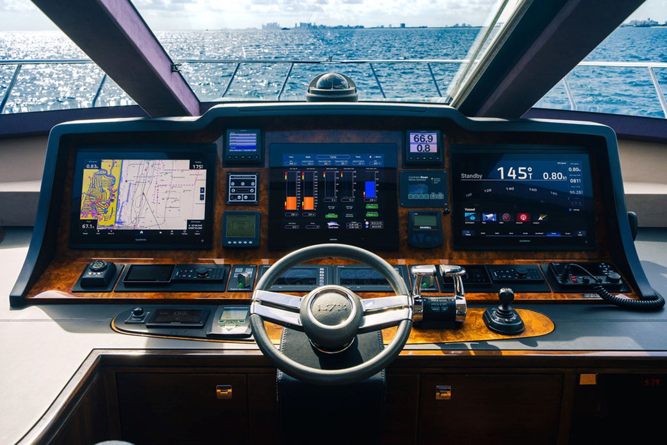 This vessel is designed and built in the world class Nordhavn Yacht factory in 2013 and delivered in 2016 , the Lanzarote "Veloce" has been skillfully crafted by the renowned yacht builder South Coast Marine with the utmost quality. Power is provided by a pair of MAN V-8 1200hp engines with ZF Pod Drives. This combination provides great performance and ease of control. The interior is finished with rich walnut cabinetry, walnut and carpeted flooring, custom stone counter tops and a tasteful blend of rich fabrics. Additional Upgrades, Improvements and Spare Parts Seakeeper 18 stabilizer Bottom paint/prop speed 12/25 New 6-foot Garmin radar array 2 new Icom radios and antennas New Garmin 8617ntouch screens HDMI screens to 3 tvs for Garmin’s to displays New Garmin auto pilot New Garmin auto pilot remote control New Victron 8000 inverters 220-volt system and all lithium house battery’s $100K upgrade Auto start for transfer generator Victron 100 amp back up battery charger (2) DC alternators to charge battery’s when engines running to reduce the need for the generator KVH satellite system 2 New whole boat WiFi USB ports throughout boat Cradlepoint booster Built in sat phone and wireless phones connected for all around boat use and not needing to be outside or attached to antenna Anchor alarms in 3 cabins Upgraded Lumishore Underwater Lights All new blue / white lights in fly bridge, aft deck ceiling and exterior lighting All new tvs with Apple TV and direct tv New direct tv antenna and receiver Fresh hull paint job New chair covers for all upper chairs All new window blinds. Electric in Salon Rear upper deck shade with carbon fiber poles Aft-deck electric shade Flybridge Enclosure with sliding windows New live edge wood table on fly bridge New watertight flybridge sun top with new motors New aft deck live edge wood table New Pizza oven on flybridge Carpeted upper deck New carpet in salon Office into bunk room with 2 twin and 1 double be New fly bridge fridge 2022 Ceramic coating on all windows All new teak chairs on fly bridge New FWD sun deck cushions Stainless steel jet ski cradles for swim step Rollers to fit 2 jet skis in garage Seadoo Waverunner Spare Parts: 4 props in shipping crates 2 new ZF Pods 2 driveshafts Spare steering pumps 1 new transmission Spare ZF joystick Spare ZF main control computer Spare port ZF controller Spare starboard ZF controller Spare all Cam wires for ZF system Salon and Galley The full beam salon is open from the aft deck to the forward helm station, with large side windows and side deck doors allowing abundant natural light and fresh air. The salon area includes a large flat panel TV and entertainment center featuring a Bose surround sound system throughout the entire boat. The spacious salon has two leather upholstered chairs to starboard and an L-shaped leather couch to port. The galley is forward on the port side with the spiral staircase up to the flybridge, wine cooler, dining table and settee to starboard. The helm is located all the way forward on the main deck. The day head is to port of the helm station just before the companionway stairs to the lower deck. The on-deck galley features walnut flooring and stone countertops. Galley equipment includes: Miele three burner ceramic cook top, Miele oven, Miele built in ventilation hood, Miele dishwasher and Subzero refrigerator with two drawer freezers. Master Stateroom The master stateroom is fitted with a custom king-sized bed, ample storage, nightstands, cabinets, and TV. Closets are all cedar lined. The large side windows and overhead opening hatch provide natural light and ventilation. The ensuite master head features a large glass enclosed shower, Techma head and tile floor. VIP Staterooms The two guest VIP staterooms are located aft, on port and starboard sides. Each stateroom is fitted with custom queen-sized beds, TV, air conditioning and ensuite heads. The heads feature large glass enclosed showers and Techma heads. Guest Stateroom The fourth stateroom serves as a guest stateroom with two single beds and one double bed. This is great for the kids to enjoy their own space. Electronics FLYBRIDGE: Boening Ships Monitor System (2) MAN engine controls ZF engine controls ZF Pod-Drive Jog Stick control Humphree trim tab controls ACR spotlight control Exalto Windshield wiper control ICOM M510 VHF radio Maxwell anchor winch control Garmin 8617 Chart Plotter Garmin Autopilot (2) Garmin GMI 20 Displays Soft Top Control MAIN HELM: Boening Ships Monitor System MAN engine controls and display ICOM VHF (2) ST 70 displays Maxwell anchor winch control ACR spotlight control Windshield wiper controls Humphree trim tab controls ZF engine controls ZF Pod-Drive Jog Stick control plus wired remote Electrical breaker panel (2) Garmin 8617 Chart Plotter (2) Garmin GMI 20 Displays Garmin Autopilot Onan Generator Control Victron Inverter Control Seakeeper 18 stabilizer control Engine Room Twin MAN V8-1200 with under 1,100 hours ZF 4000 Pod drives CruiseAir chilled water systems Halon fixed fire system in engine room Racor fuel filters Glendenning retracting shore power cord Engine room ventilation Fecteau Yacht de-salinization water maker Electrical Equipment 110/220 VAC 60Hz electrical system 40kW Onan generator Generator sound shield 50' 50amp shore power cord Shore power inlet with Glendenning power cord retracting system (2) isolation transformers High amp alternators on the engines to charge house batteries Victron Smart battery monitor and Inverter System Deck and Hull Hull and deck construction consist of Core-Cell laminated fiberglass with Isophthalic Gelcoat and vinylester resin for the first three layers on the underwater areas. Swimstep and Cal Deck are finished in teak Forward deck and flybridge deck are non-skid Stainless steel handrails with tapered stations 12mm tempered glass windows Automatic stainless steel sliding salon door Stainless steel flybridge hatch Tender garage with winch Arietx hydraulic sw