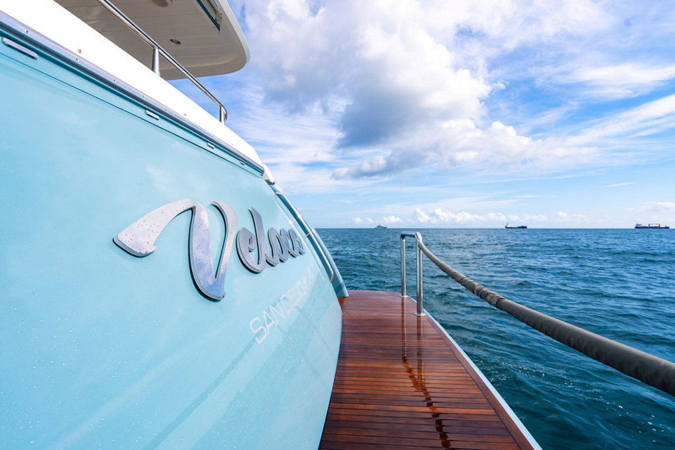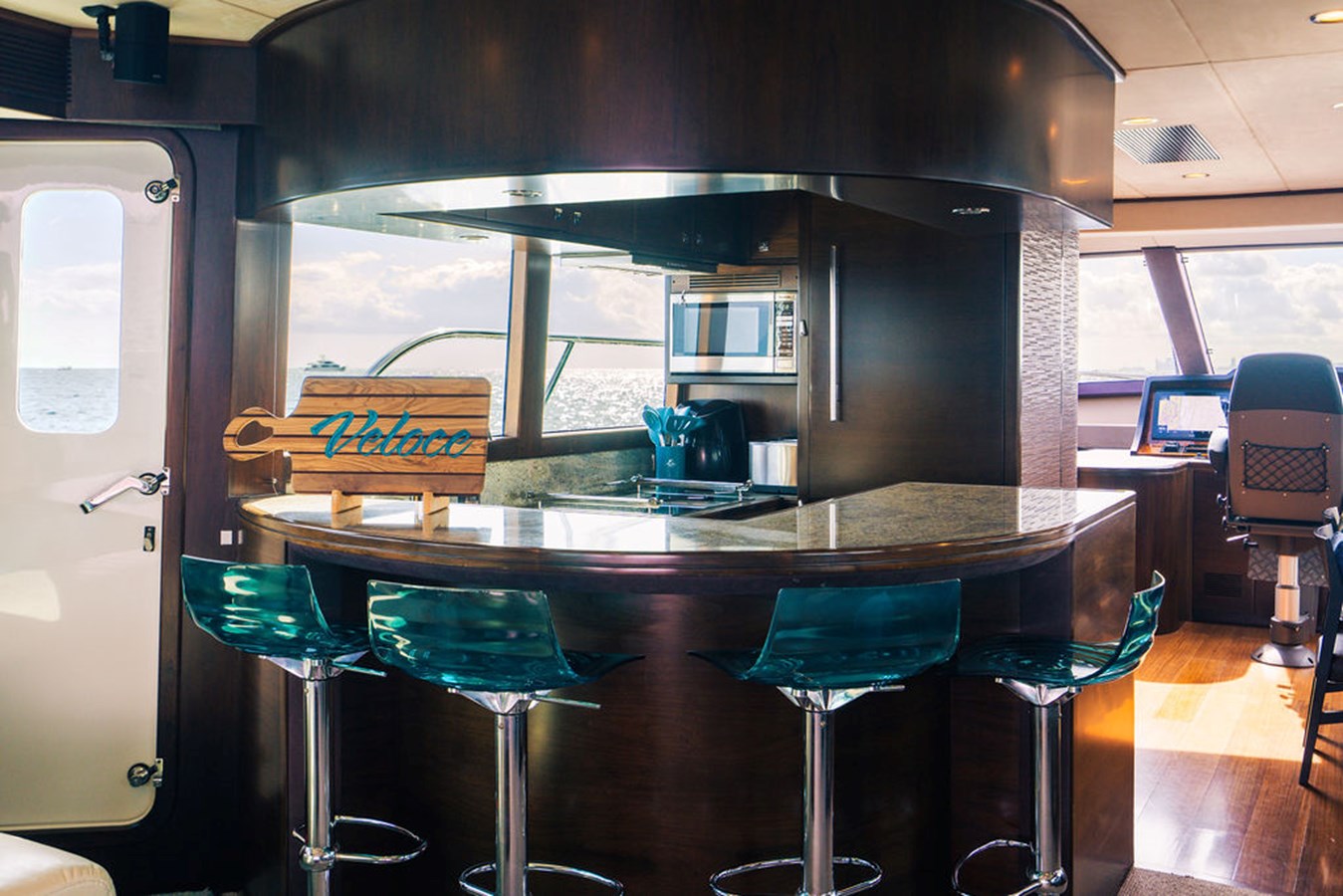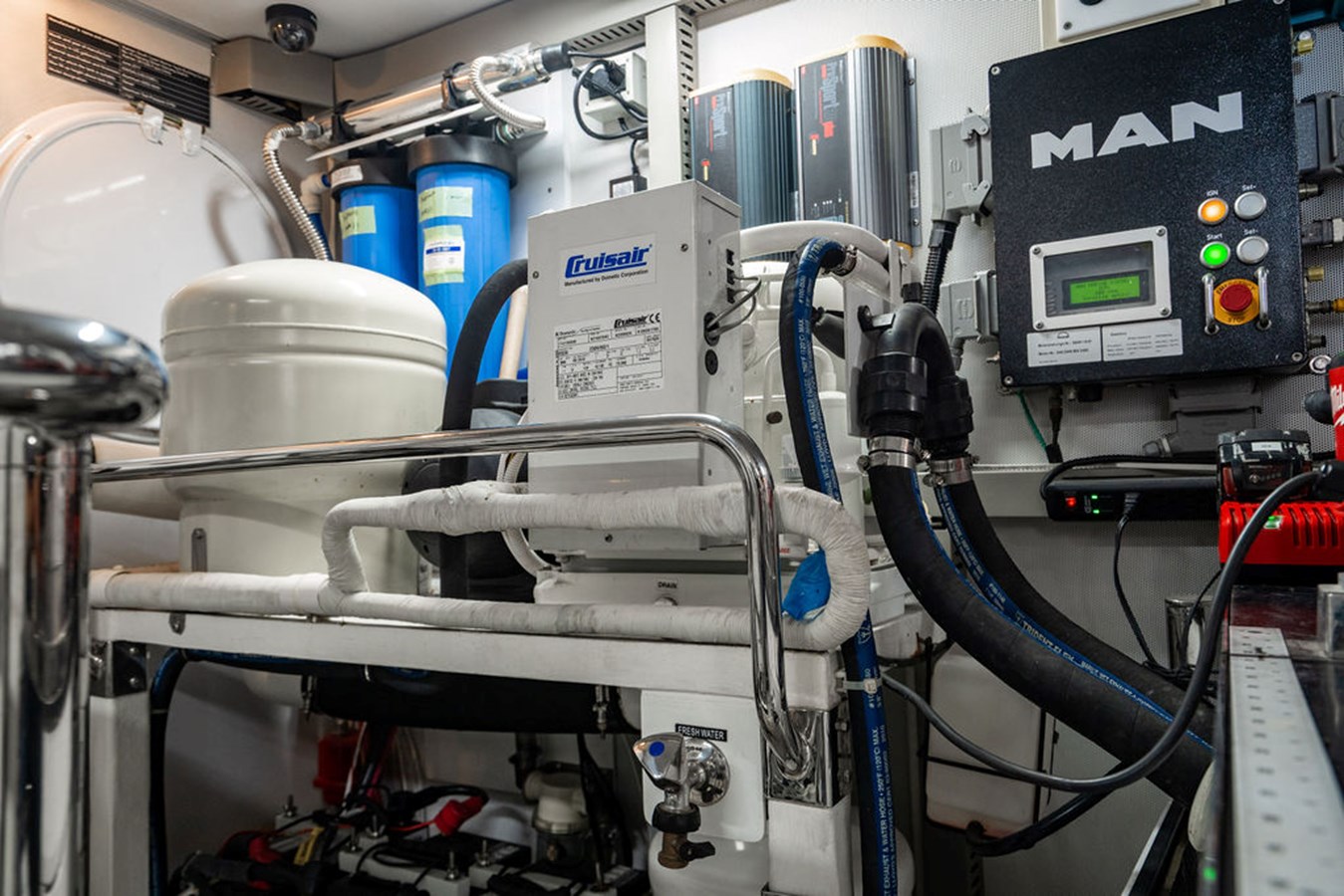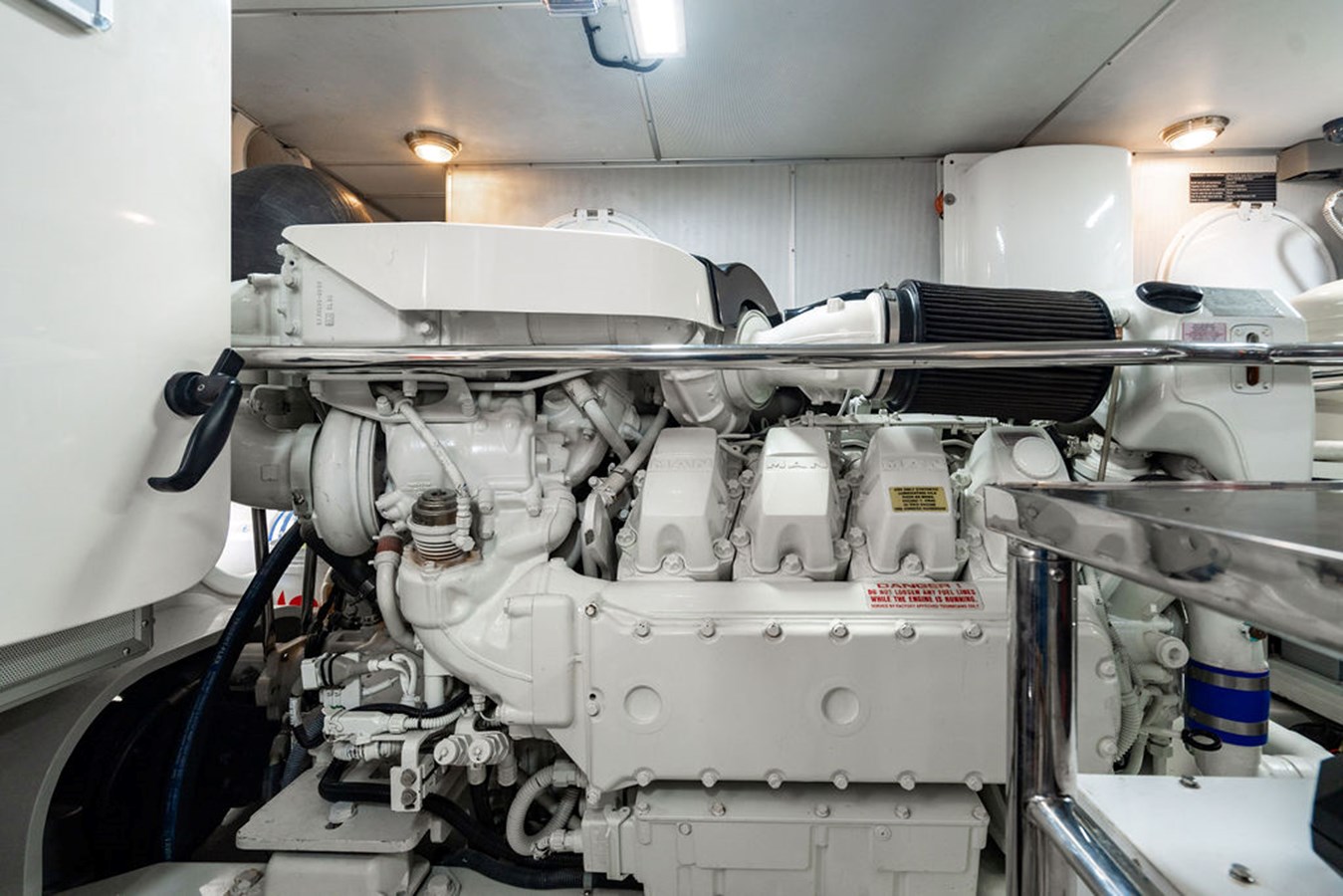 This vessel is designed and built in the world class Nordhavn Yacht factory in 2013 and delivered in 2016 , the Lanzarote "Veloce" has been skillfully crafted by the renowned yacht builder South Coast Marine with the utmost quality. Power is provided by a pair of MAN V-8 1200hp engines with ZF Pod Drives. This combination provides great performance and ease of control. The interior is finished with rich walnut cabinetry, walnut and carpeted flooring, custom stone counter tops and a tasteful blend of rich fabrics. Additional Upgrades, Improvements and Spare Parts Seakeeper 18 stabilizer Bottom paint/prop speed 12/25 New 6-foot Garmin radar array 2 new Icom radios and antennas New Garmin 8617ntouch screens HDMI screens to 3 tvs for Garmin’s to displays New Garmin auto pilot New Garmin auto pilot remote control New Victron 8000 inverters 220-volt system and all lithium house battery’s $100K upgrade Auto start for transfer generator Victron 100 amp back up battery charger (2) DC alternators to charge battery’s when engines running to reduce the need for the generator KVH satellite system 2 New whole boat WiFi USB ports throughout boat Cradlepoint booster Built in sat phone and wireless phones connected for all around boat use and not needing to be outside or attached to antenna Anchor alarms in 3 cabins Upgraded Lumishore Underwater Lights All new blue / white lights in fly bridge, aft deck ceiling and exterior lighting All new tvs with Apple TV and direct tv New direct tv antenna and receiver Fresh hull paint job New chair covers for all upper chairs All new window blinds. Electric in Salon Rear upper deck shade with carbon fiber poles Aft-deck electric shade Flybridge Enclosure with sliding windows New live edge wood table on fly bridge New watertight flybridge sun top with new motors New aft deck live edge wood table New Pizza oven on flybridge Carpeted upper deck New carpet in salon Office into bunk room with 2 twin and 1 double be New fly bridge fridge 2022 Ceramic coating on all windows All new teak chairs on fly bridge New FWD sun deck cushions Stainless steel jet ski cradles for swim step Rollers to fit 2 jet skis in garage Seadoo Waverunner Spare Parts: 4 props in shipping crates 2 new ZF Pods 2 driveshafts Spare steering pumps 1 new transmission Spare ZF joystick Spare ZF main control computer Spare port ZF controller Spare starboard ZF controller Spare all Cam wires for ZF system Salon and Galley The full beam salon is open from the aft deck to the forward helm station, with large side windows and side deck doors allowing abundant natural light and fresh air. The salon area includes a large flat panel TV and entertainment center featuring a Bose surround sound system throughout the entire boat. The spacious salon has two leather upholstered chairs to starboard and an L-shaped leather couch to port. The galley is forward on the port side with the spiral staircase up to the flybridge, wine cooler, dining table and settee to starboard. The helm is located all the way forward on the main deck. The day head is to port of the helm station just before the companionway stairs to the lower deck. The on-deck galley features walnut flooring and stone countertops. Galley equipment includes: Miele three burner ceramic cook top, Miele oven, Miele built in ventilation hood, Miele dishwasher and Subzero refrigerator with two drawer freezers. Master Stateroom The master stateroom is fitted with a custom king-sized bed, ample storage, nightstands, cabinets, and TV. Closets are all cedar lined. The large side windows and overhead opening hatch provide natural light and ventilation. The ensuite master head features a large glass enclosed shower, Techma head and tile floor. VIP Staterooms The two guest VIP staterooms are located aft, on port and starboard sides. Each stateroom is fitted with custom queen-sized beds, TV, air conditioning and ensuite heads. The heads feature large glass enclosed showers and Techma heads. Guest Stateroom The fourth stateroom serves as a guest stateroom with two single beds and one double bed. This is great for the kids to enjoy their own space. Electronics FLYBRIDGE: Boening Ships Monitor System (2) MAN engine controls ZF engine controls ZF Pod-Drive Jog Stick control Humphree trim tab controls ACR spotlight control Exalto Windshield wiper control ICOM M510 VHF radio Maxwell anchor winch control Garmin 8617 Chart Plotter Garmin Autopilot (2) Garmin GMI 20 Displays Soft Top Control MAIN HELM: Boening Ships Monitor System MAN engine controls and display ICOM VHF (2) ST 70 displays Maxwell anchor winch control ACR spotlight control Windshield wiper controls Humphree trim tab controls ZF engine controls ZF Pod-Drive Jog Stick control plus wired remote Electrical breaker panel (2) Garmin 8617 Chart Plotter (2) Garmin GMI 20 Displays Garmin Autopilot Onan Generator Control Victron Inverter Control Seakeeper 18 stabilizer control Engine Room Twin MAN V8-1200 with under 1,100 hours ZF 4000 Pod drives CruiseAir chilled water systems Halon fixed fire system in engine room Racor fuel filters Glendenning retracting shore power cord Engine room ventilation Fecteau Yacht de-salinization water maker Electrical Equipment 110/220 VAC 60Hz electrical system 40kW Onan generator Generator sound shield 50' 50amp shore power cord Shore power inlet with Glendenning power cord retracting system (2) isolation transformers High amp alternators on the engines to charge house batteries Victron Smart battery monitor and Inverter System Deck and Hull Hull and deck construction consist of Core-Cell laminated fiberglass with Isophthalic Gelcoat and vinylester resin for the first three layers on the underwater areas. Swimstep and Cal Deck are finished in teak Forward deck and flybridge deck are non-skid Stainless steel handrails with tapered stations 12mm tempered glass windows Automatic stainless steel sliding salon door Stainless steel flybridge hatch Tender garage with winch Arietx hydraulic sw