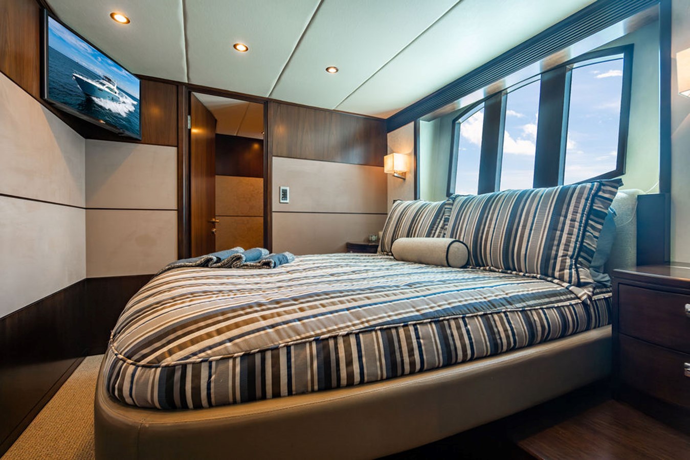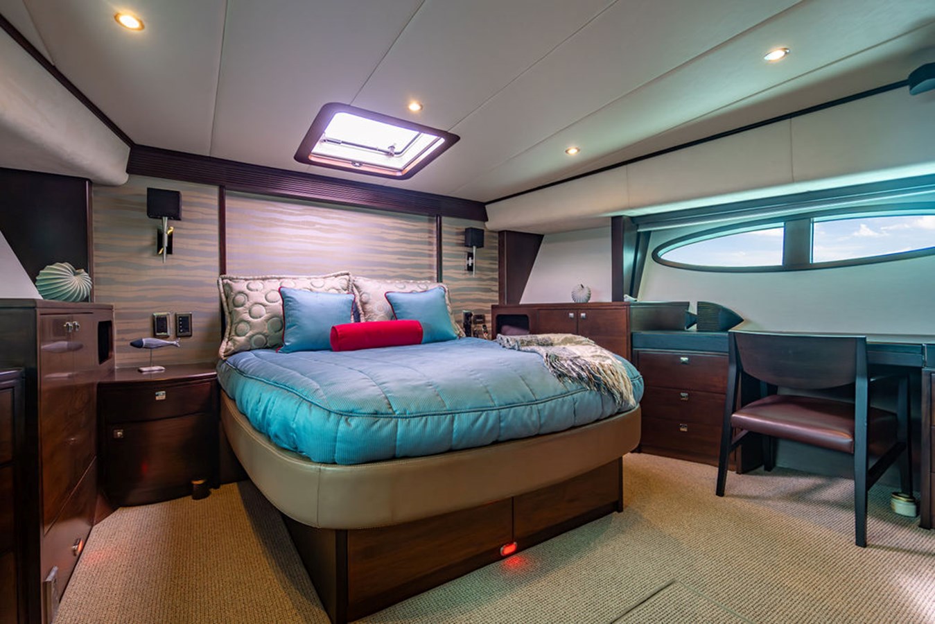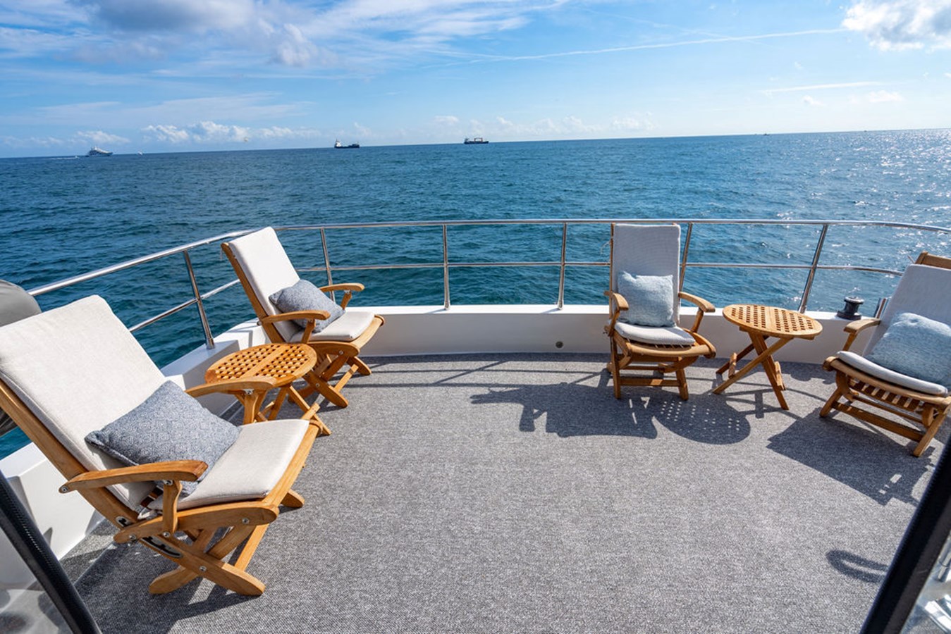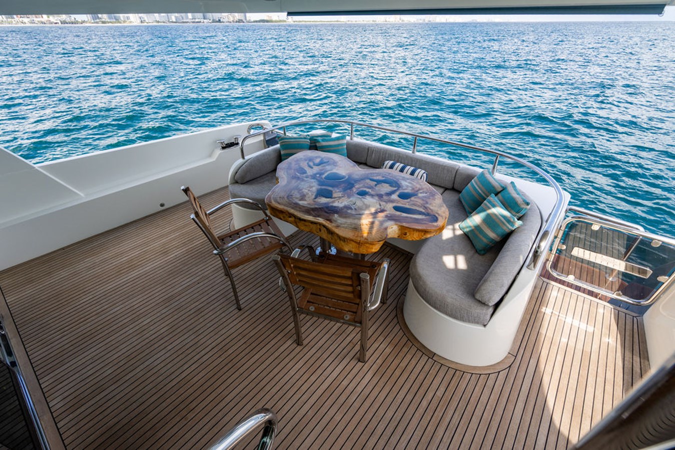 This vessel is designed and built in the world class Nordhavn Yacht factory in 2013 and delivered in 2016 , the Lanzarote "Veloce" has been skillfully crafted by the renowned yacht builder South Coast Marine with the utmost quality. Power is provided by a pair of MAN V-8 1200hp engines with ZF Pod Drives. This combination provides great performance and ease of control. The interior is finished with rich walnut cabinetry, walnut and carpeted flooring, custom stone counter tops and a tasteful blend of rich fabrics. Additional Upgrades, Improvements and Spare Parts Seakeeper 18 stabilizer Bottom paint/prop speed 12/25 New 6-foot Garmin radar array 2 new Icom radios and antennas New Garmin 8617ntouch screens HDMI screens to 3 tvs for Garmin’s to displays New Garmin auto pilot New Garmin auto pilot remote control New Victron 8000 inverters 220-volt system and all lithium house battery’s $100K upgrade Auto start for transfer generator Victron 100 amp back up battery charger (2) DC alternators to charge battery’s when engines running to reduce the need for the generator KVH satellite system 2 New whole boat WiFi USB ports throughout boat Cradlepoint booster Built in sat phone and wireless phones connected for all around boat use and not needing to be outside or attached to antenna Anchor alarms in 3 cabins Upgraded Lumishore Underwater Lights All new blue / white lights in fly bridge, aft deck ceiling and exterior lighting All new tvs with Apple TV and direct tv New direct tv antenna and receiver Fresh hull paint job New chair covers for all upper chairs All new window blinds. Electric in Salon Rear upper deck shade with carbon fiber poles Aft-deck electric shade Flybridge Enclosure with sliding windows New live edge wood table on fly bridge New watertight flybridge sun top with new motors New aft deck live edge wood table New Pizza oven on flybridge Carpeted upper deck New carpet in salon Office into bunk room with 2 twin and 1 double be New fly bridge fridge 2022 Ceramic coating on all windows All new teak chairs on fly bridge New FWD sun deck cushions Stainless steel jet ski cradles for swim step Rollers to fit 2 jet skis in garage Seadoo Waverunner Spare Parts: 4 props in shipping crates 2 new ZF Pods 2 driveshafts Spare steering pumps 1 new transmission Spare ZF joystick Spare ZF main control computer Spare port ZF controller Spare starboard ZF controller Spare all Cam wires for ZF system Salon and Galley The full beam salon is open from the aft deck to the forward helm station, with large side windows and side deck doors allowing abundant natural light and fresh air. The salon area includes a large flat panel TV and entertainment center featuring a Bose surround sound system throughout the entire boat. The spacious salon has two leather upholstered chairs to starboard and an L-shaped leather couch to port. The galley is forward on the port side with the spiral staircase up to the flybridge, wine cooler, dining table and settee to starboard. The helm is located all the way forward on the main deck. The day head is to port of the helm station just before the companionway stairs to the lower deck. The on-deck galley features walnut flooring and stone countertops. Galley equipment includes: Miele three burner ceramic cook top, Miele oven, Miele built in ventilation hood, Miele dishwasher and Subzero refrigerator with two drawer freezers. Master Stateroom The master stateroom is fitted with a custom king-sized bed, ample storage, nightstands, cabinets, and TV. Closets are all cedar lined. The large side windows and overhead opening hatch provide natural light and ventilation. The ensuite master head features a large glass enclosed shower, Techma head and tile floor. VIP Staterooms The two guest VIP staterooms are located aft, on port and starboard sides. Each stateroom is fitted with custom queen-sized beds, TV, air conditioning and ensuite heads. The heads feature large glass enclosed showers and Techma heads. Guest Stateroom The fourth stateroom serves as a guest stateroom with two single beds and one double bed. This is great for the kids to enjoy their own space. Electronics FLYBRIDGE: Boening Ships Monitor System (2) MAN engine controls ZF engine controls ZF Pod-Drive Jog Stick control Humphree trim tab controls ACR spotlight control Exalto Windshield wiper control ICOM M510 VHF radio Maxwell anchor winch control Garmin 8617 Chart Plotter Garmin Autopilot (2) Garmin GMI 20 Displays Soft Top Control MAIN HELM: Boening Ships Monitor System MAN engine controls and display ICOM VHF (2) ST 70 displays Maxwell anchor winch control ACR spotlight control Windshield wiper controls Humphree trim tab controls ZF engine controls ZF Pod-Drive Jog Stick control plus wired remote Electrical breaker panel (2) Garmin 8617 Chart Plotter (2) Garmin GMI 20 Displays Garmin Autopilot Onan Generator Control Victron Inverter Control Seakeeper 18 stabilizer control Engine Room Twin MAN V8-1200 with under 1,100 hours ZF 4000 Pod drives CruiseAir chilled water systems Halon fixed fire system in engine room Racor fuel filters Glendenning retracting shore power cord Engine room ventilation Fecteau Yacht de-salinization water maker Electrical Equipment 110/220 VAC 60Hz electrical system 40kW Onan generator Generator sound shield 50' 50amp shore power cord Shore power inlet with Glendenning power cord retracting system (2) isolation transformers High amp alternators on the engines to charge house batteries Victron Smart battery monitor and Inverter System Deck and Hull Hull and deck construction consist of Core-Cell laminated fiberglass with Isophthalic Gelcoat and vinylester resin for the first three layers on the underwater areas. Swimstep and Cal Deck are finished in teak Forward deck and flybridge deck are non-skid Stainless steel handrails with tapered stations 12mm tempered glass windows Automatic stainless steel sliding salon door Stainless steel flybridge hatch Tender garage with winch Arietx hydraulic sw