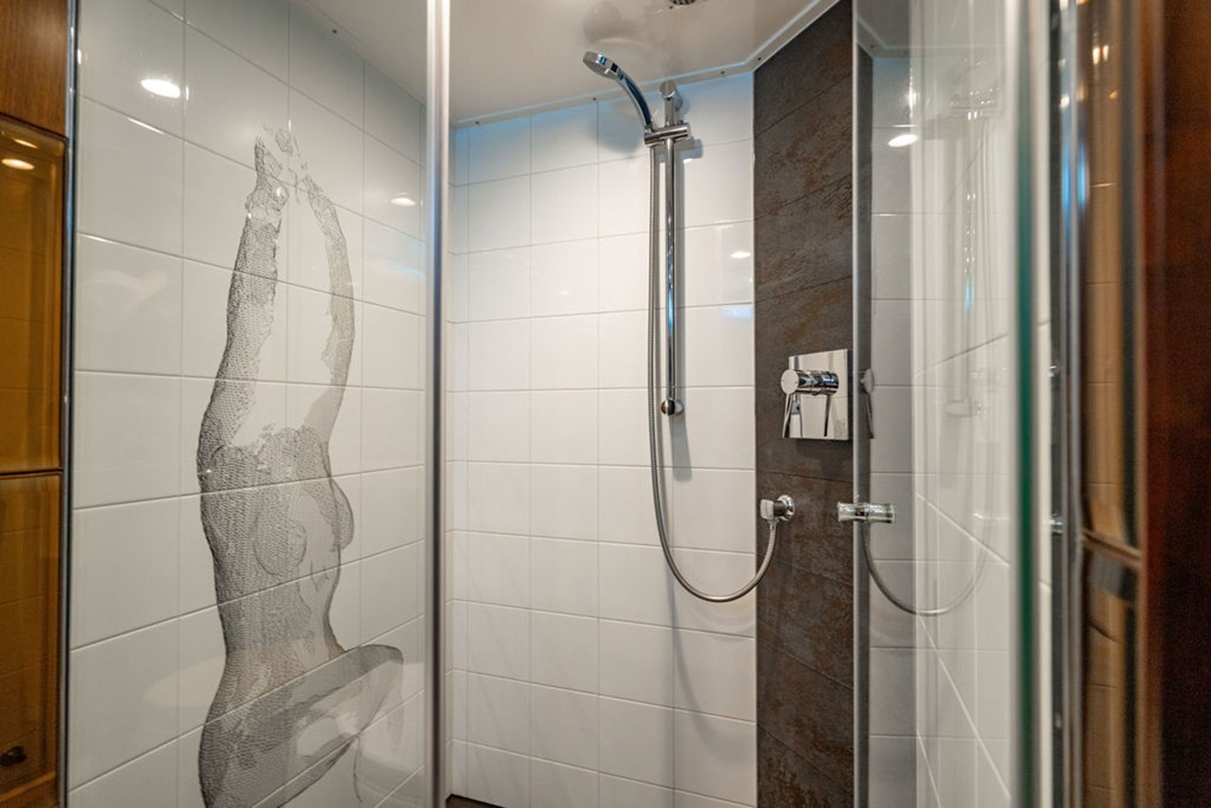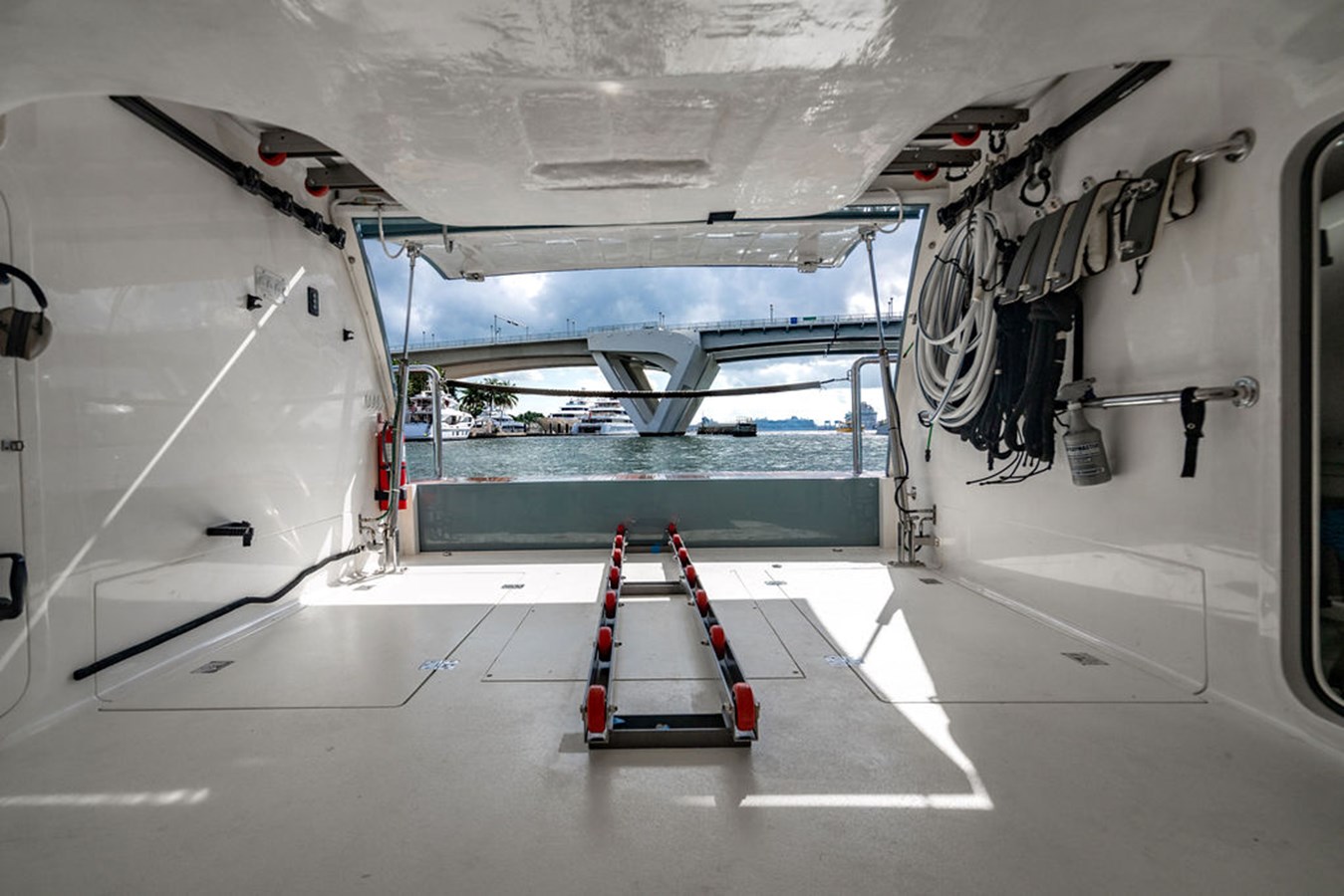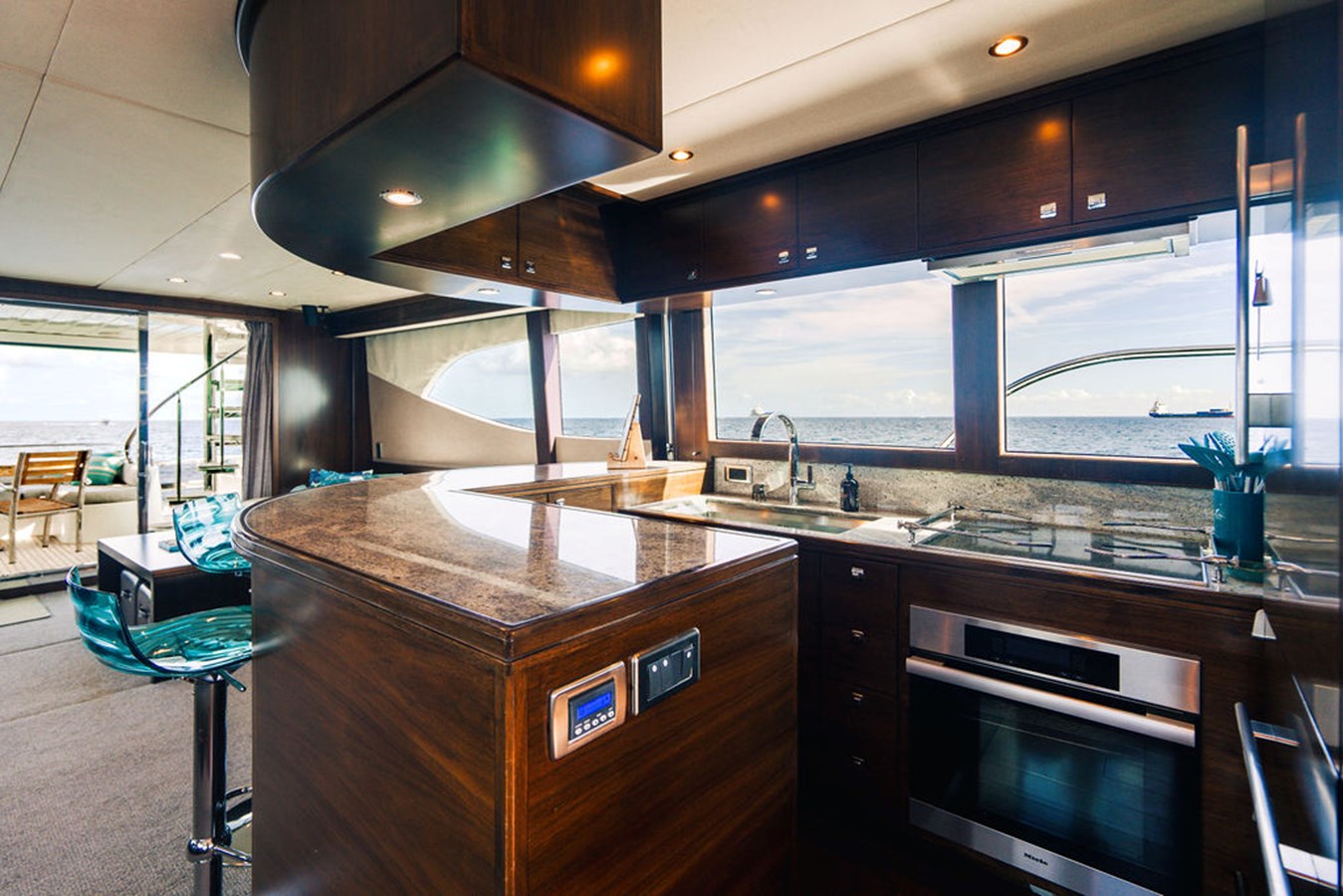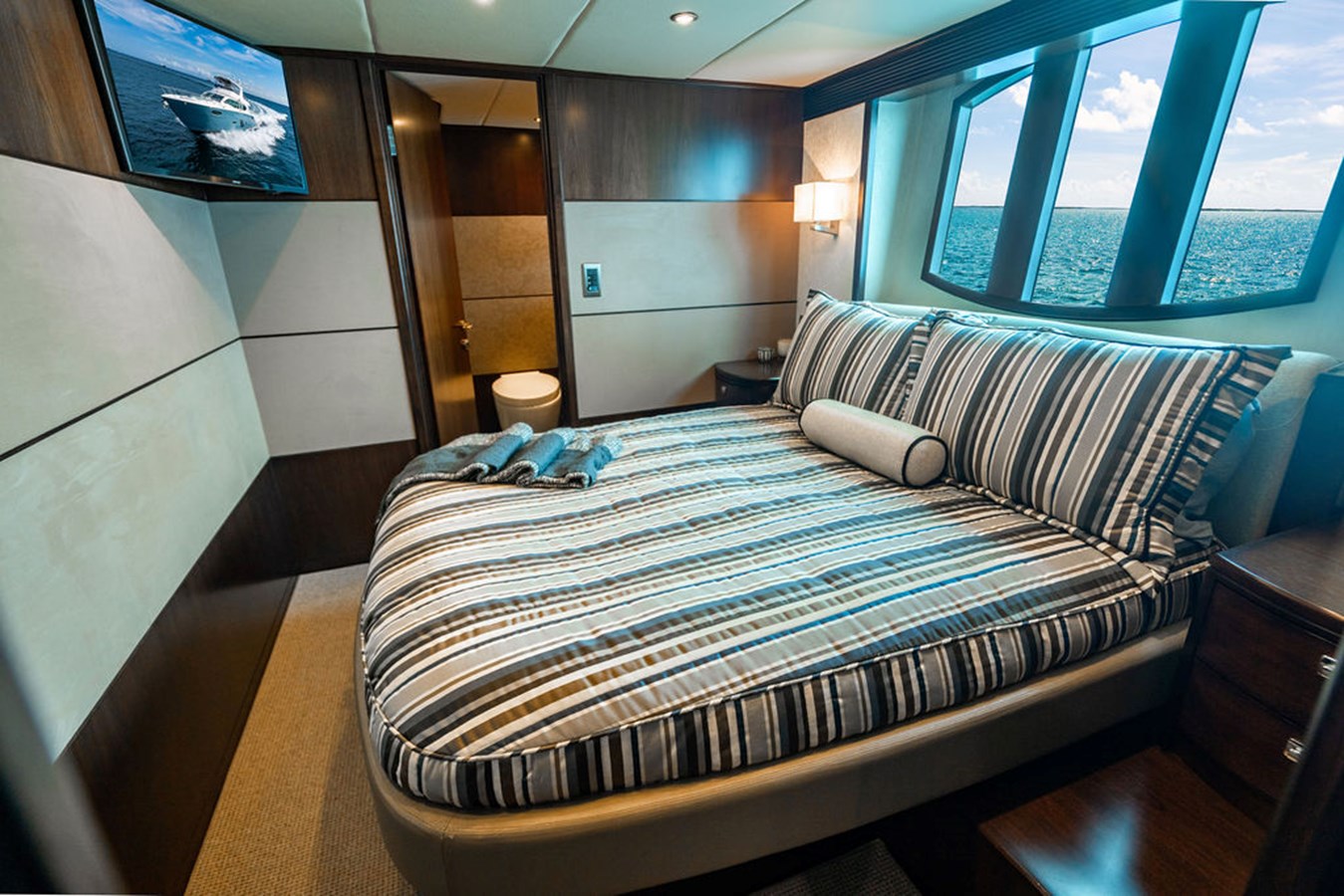 This vessel is designed and built in the world class Nordhavn Yacht factory in 2013 and delivered in 2016 , the Lanzarote "Veloce" has been skillfully crafted by the renowned yacht builder South Coast Marine with the utmost quality. Power is provided by a pair of MAN V-8 1200hp engines with ZF Pod Drives. This combination provides great performance and ease of control. The interior is finished with rich walnut cabinetry, walnut and carpeted flooring, custom stone counter tops and a tasteful blend of rich fabrics. Additional Upgrades, Improvements and Spare Parts Seakeeper 18 stabilizer Bottom paint/prop speed 12/25 New 6-foot Garmin radar array 2 new Icom radios and antennas New Garmin 8617ntouch screens HDMI screens to 3 tvs for Garmin’s to displays New Garmin auto pilot New Garmin auto pilot remote control New Victron 8000 inverters 220-volt system and all lithium house battery’s $100K upgrade Auto start for transfer generator Victron 100 amp back up battery charger (2) DC alternators to charge battery’s when engines running to reduce the need for the generator KVH satellite system 2 New whole boat WiFi USB ports throughout boat Cradlepoint booster Built in sat phone and wireless phones connected for all around boat use and not needing to be outside or attached to antenna Anchor alarms in 3 cabins Upgraded Lumishore Underwater Lights All new blue / white lights in fly bridge, aft deck ceiling and exterior lighting All new tvs with Apple TV and direct tv New direct tv antenna and receiver Fresh hull paint job New chair covers for all upper chairs All new window blinds. Electric in Salon Rear upper deck shade with carbon fiber poles Aft-deck electric shade Flybridge Enclosure with sliding windows New live edge wood table on fly bridge New watertight flybridge sun top with new motors New aft deck live edge wood table New Pizza oven on flybridge Carpeted upper deck New carpet in salon Office into bunk room with 2 twin and 1 double be New fly bridge fridge 2022 Ceramic coating on all windows All new teak chairs on fly bridge New FWD sun deck cushions Stainless steel jet ski cradles for swim step Rollers to fit 2 jet skis in garage Seadoo Waverunner Spare Parts: 4 props in shipping crates 2 new ZF Pods 2 driveshafts Spare steering pumps 1 new transmission Spare ZF joystick Spare ZF main control computer Spare port ZF controller Spare starboard ZF controller Spare all Cam wires for ZF system Salon and Galley The full beam salon is open from the aft deck to the forward helm station, with large side windows and side deck doors allowing abundant natural light and fresh air. The salon area includes a large flat panel TV and entertainment center featuring a Bose surround sound system throughout the entire boat. The spacious salon has two leather upholstered chairs to starboard and an L-shaped leather couch to port. The galley is forward on the port side with the spiral staircase up to the flybridge, wine cooler, dining table and settee to starboard. The helm is located all the way forward on the main deck. The day head is to port of the helm station just before the companionway stairs to the lower deck. The on-deck galley features walnut flooring and stone countertops. Galley equipment includes: Miele three burner ceramic cook top, Miele oven, Miele built in ventilation hood, Miele dishwasher and Subzero refrigerator with two drawer freezers. Master Stateroom The master stateroom is fitted with a custom king-sized bed, ample storage, nightstands, cabinets, and TV. Closets are all cedar lined. The large side windows and overhead opening hatch provide natural light and ventilation. The ensuite master head features a large glass enclosed shower, Techma head and tile floor. VIP Staterooms The two guest VIP staterooms are located aft, on port and starboard sides. Each stateroom is fitted with custom queen-sized beds, TV, air conditioning and ensuite heads. The heads feature large glass enclosed showers and Techma heads. Guest Stateroom The fourth stateroom serves as a guest stateroom with two single beds and one double bed. This is great for the kids to enjoy their own space. Electronics FLYBRIDGE: Boening Ships Monitor System (2) MAN engine controls ZF engine controls ZF Pod-Drive Jog Stick control Humphree trim tab controls ACR spotlight control Exalto Windshield wiper control ICOM M510 VHF radio Maxwell anchor winch control Garmin 8617 Chart Plotter Garmin Autopilot (2) Garmin GMI 20 Displays Soft Top Control MAIN HELM: Boening Ships Monitor System MAN engine controls and display ICOM VHF (2) ST 70 displays Maxwell anchor winch control ACR spotlight control Windshield wiper controls Humphree trim tab controls ZF engine controls ZF Pod-Drive Jog Stick control plus wired remote Electrical breaker panel (2) Garmin 8617 Chart Plotter (2) Garmin GMI 20 Displays Garmin Autopilot Onan Generator Control Victron Inverter Control Seakeeper 18 stabilizer control Engine Room Twin MAN V8-1200 with under 1,100 hours ZF 4000 Pod drives CruiseAir chilled water systems Halon fixed fire system in engine room Racor fuel filters Glendenning retracting shore power cord Engine room ventilation Fecteau Yacht de-salinization water maker Electrical Equipment 110/220 VAC 60Hz electrical system 40kW Onan generator Generator sound shield 50' 50amp shore power cord Shore power inlet with Glendenning power cord retracting system (2) isolation transformers High amp alternators on the engines to charge house batteries Victron Smart battery monitor and Inverter System Deck and Hull Hull and deck construction consist of Core-Cell laminated fiberglass with Isophthalic Gelcoat and vinylester resin for the first three layers on the underwater areas. Swimstep and Cal Deck are finished in teak Forward deck and flybridge deck are non-skid Stainless steel handrails with tapered stations 12mm tempered glass windows Automatic stainless steel sliding salon door Stainless steel flybridge hatch Tender garage with winch Arietx hydraulic sw