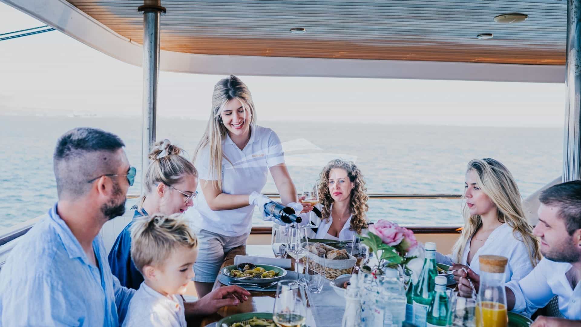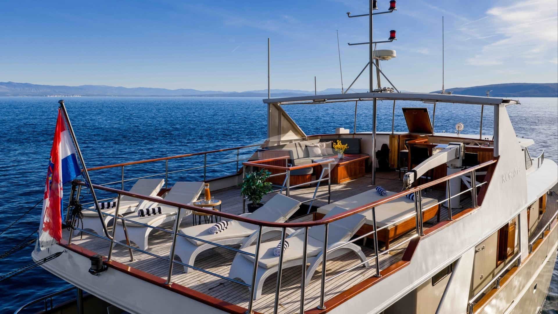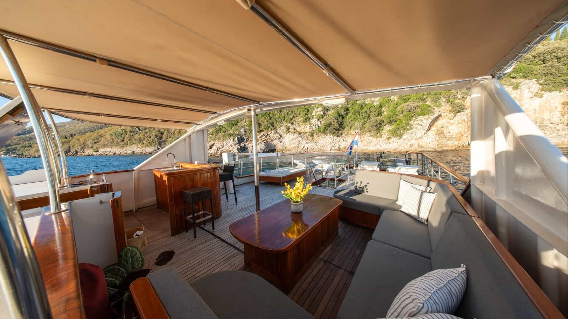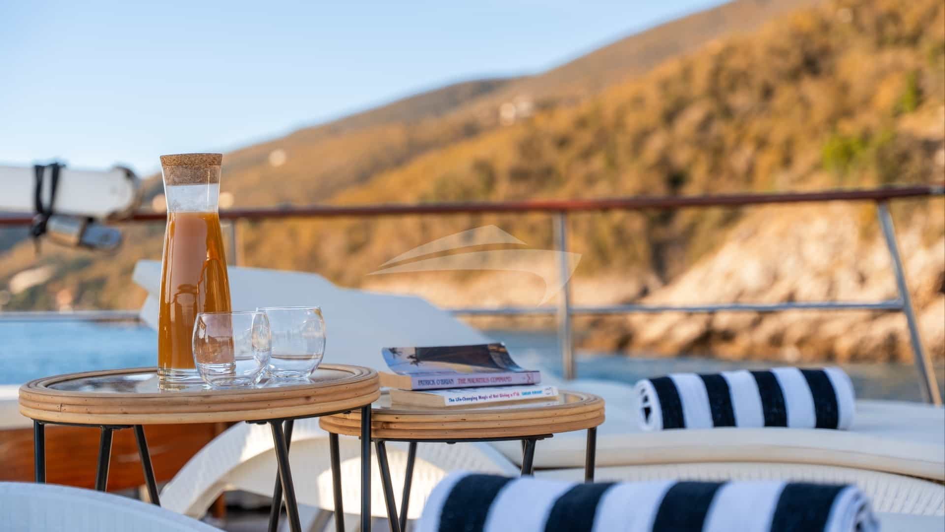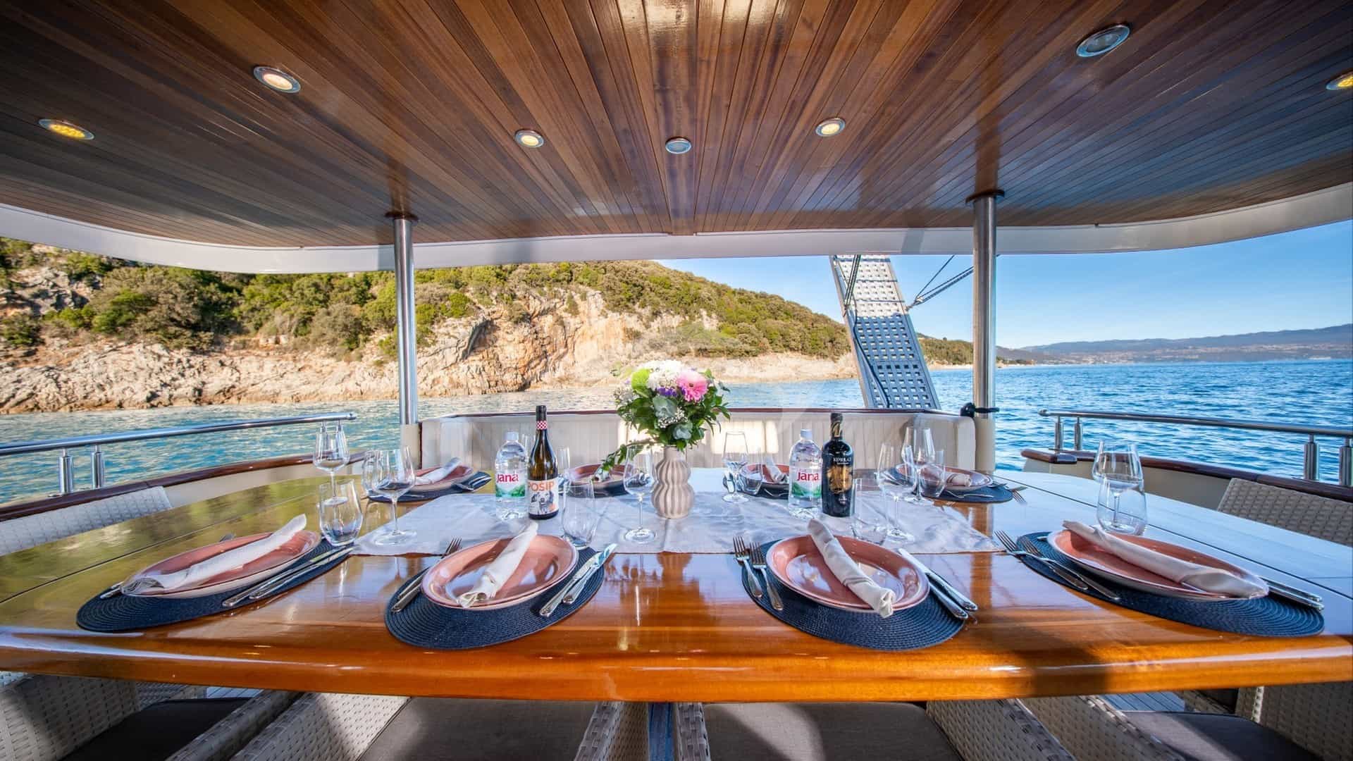 1. CHARTER FEEIncludes: Shipboard accommodation, permits, insurance, all equipment on board, tender withoutboard engine, linens and towels, fuel for main engine, 4 h of navigation per day, crewsalaries, gasoline for tender, diesel for generator (24/h day), Internet connection, VAT.2. FOOD OPTIONSHalf board: 300 € pax/week (breakfast + lunch or dinner) Full Board : 500 € pax/week (breakfast + lunch + dinner) 3. BEVERAGE OPTIONSA) Beverages on yacht bar only – by bar price list, in this option clients are not allowed to bring their own beverages on board.B) - All inclusive domestic package - includes Croatian wines, beers, spirits, soft drinks, naturaland mineral water, coffee, tea, juices – 170 € pax/week. - All inclusive dom. non alcoholic package – 90 € pax/week.EXTRA COSTS- town port taxes, anchorage fees, marina fees*- guest taxes ( 1€ per person per day)*- Dubrovnik visit fee on Split – Split route: 1.000 €- Extra navigation: 100 €/h (This cost is already included in Delivery and Dubrovnik Visit Fee)- Delivery Fee for embarkation / disembarkation in Dubrovnik: 800 € (refundable if yacht gets booked in a way that it is not causing extra costs).*clients can choose to pay town port taxes, anchorage fees,marina fees and guest taxes as APA of 1500€/week or on board according to actual costsAbove mentioned prices DO NOT INCLUDE:Transfers to or from the yacht/hotel/airport, shore excursions, adverse activities (scuba diving, big game fishing, rafting…), national park and park of nature entrances, guided tours, gratuities / tips for the crew.Booking terms:Option is placed on explicit e-mail request, and is active until agreed date. Booking needs to be confirmed while option is active. Option expires after agreed date without special warning. Please take care of your option expiration. Booking is confirmed when agreement is signed by both parties and deposit paid.Payment conditions:Deposit: 50 % of charter fee – immediately, as confirmation of bookingBalance: 50 % of charter fee + Other costs - not later than 6 weeks before charter commencementMean of payment: wire transfer to account of Booking Agent.