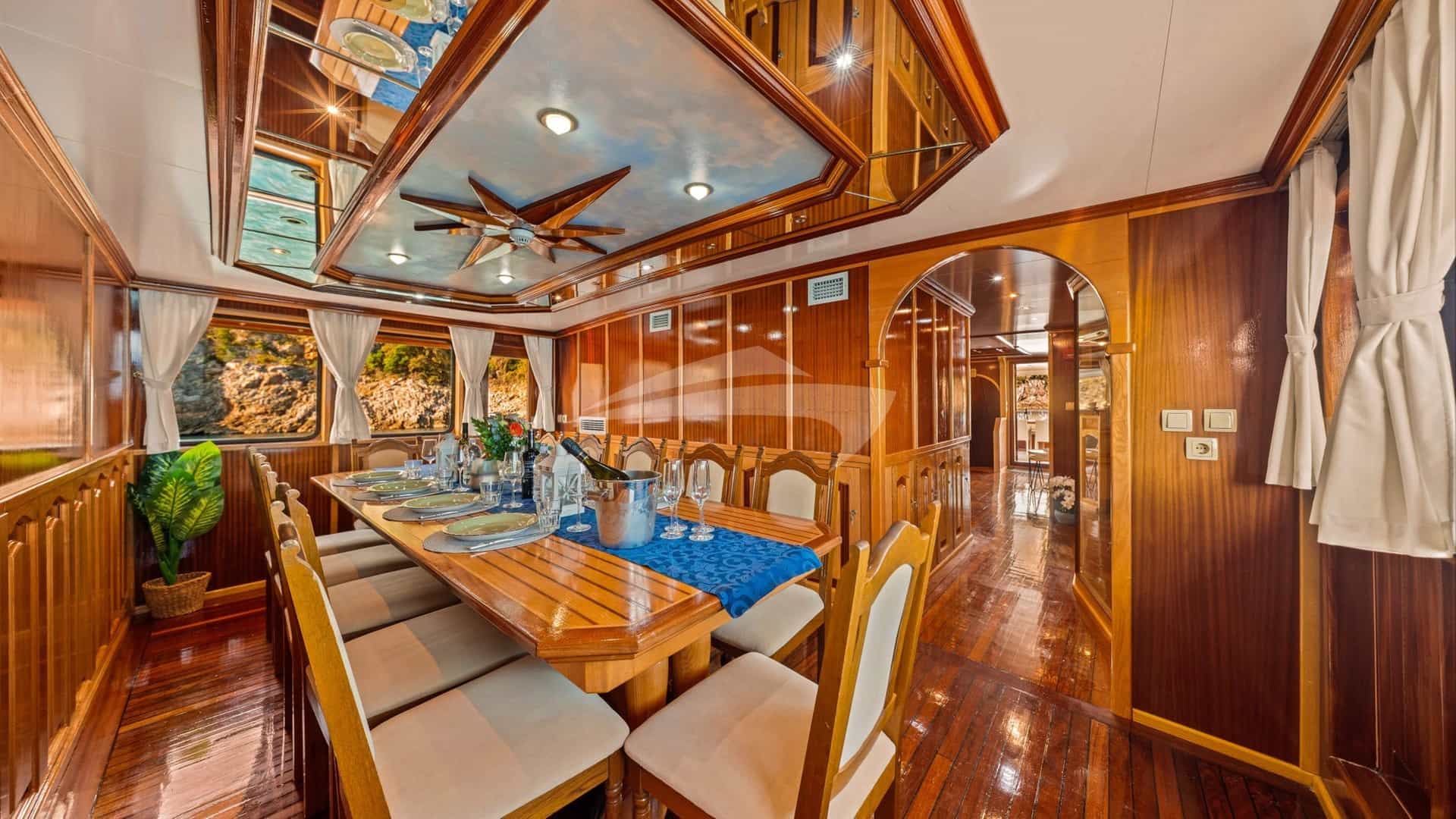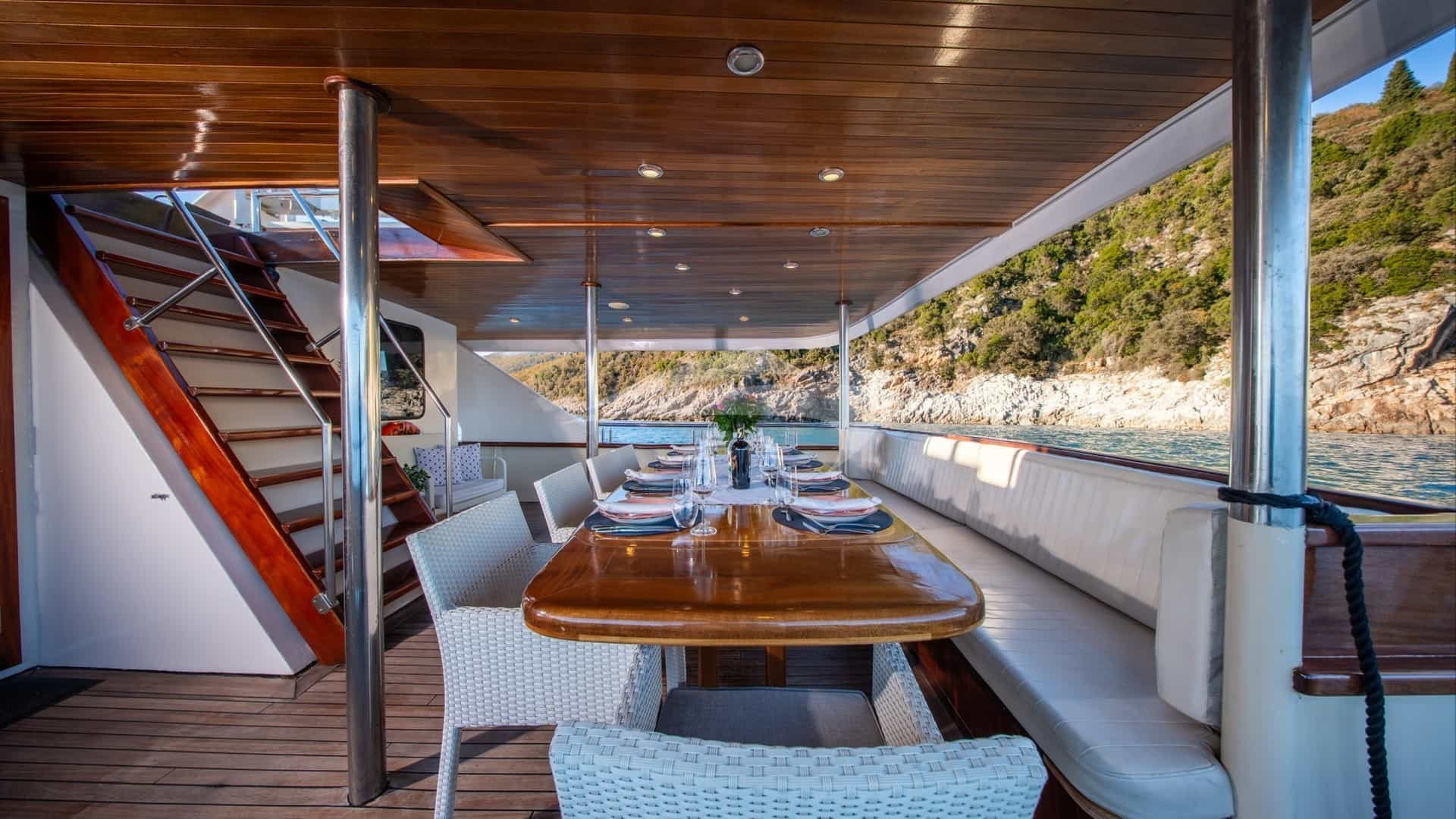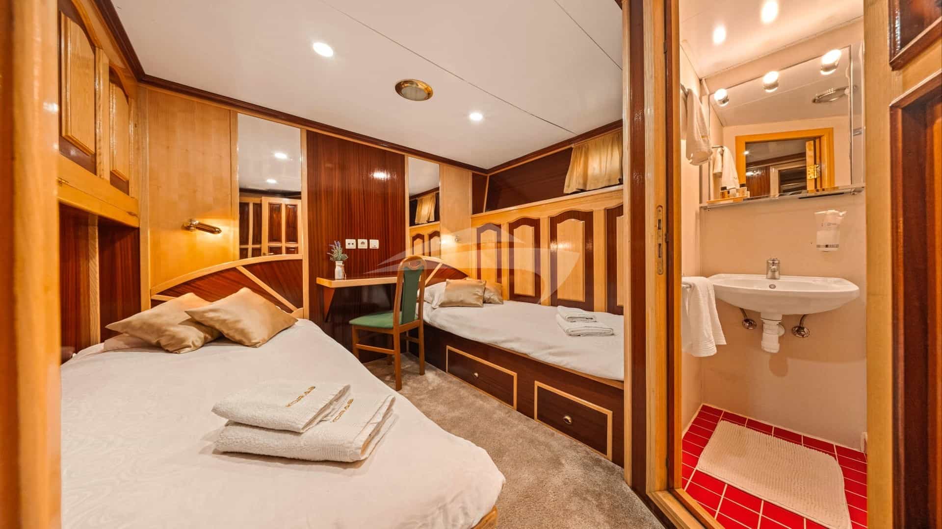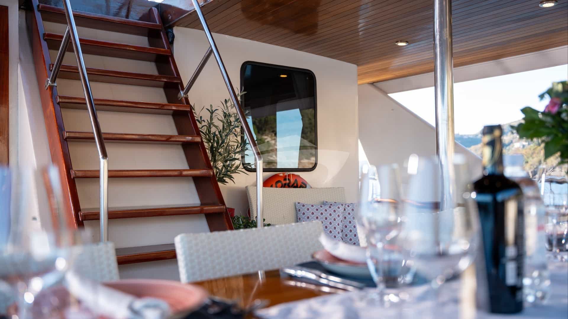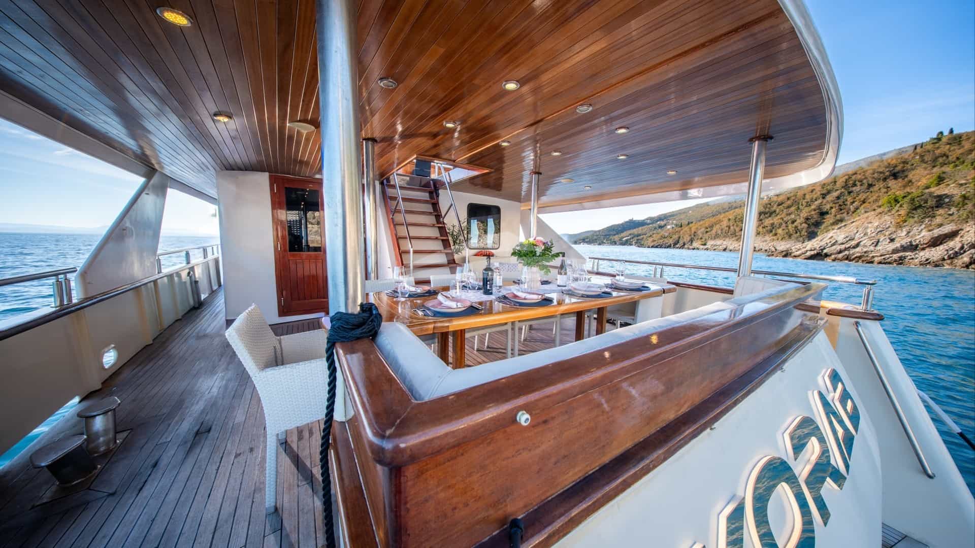 1. CHARTER FEEIncludes: Shipboard accommodation, permits, insurance, all equipment on board, tender withoutboard engine, linens and towels, fuel for main engine, 4 h of navigation per day, crewsalaries, gasoline for tender, diesel for generator (24/h day), Internet connection, VAT.2. FOOD OPTIONSHalf board: 300 € pax/week (breakfast + lunch or dinner) Full Board : 500 € pax/week (breakfast + lunch + dinner) 3. BEVERAGE OPTIONSA) Beverages on yacht bar only – by bar price list, in this option clients are not allowed to bring their own beverages on board.B) - All inclusive domestic package - includes Croatian wines, beers, spirits, soft drinks, naturaland mineral water, coffee, tea, juices – 170 € pax/week. - All inclusive dom. non alcoholic package – 90 € pax/week.EXTRA COSTS- town port taxes, anchorage fees, marina fees*- guest taxes ( 1€ per person per day)*- Dubrovnik visit fee on Split – Split route: 1.000 €- Extra navigation: 100 €/h (This cost is already included in Delivery and Dubrovnik Visit Fee)- Delivery Fee for embarkation / disembarkation in Dubrovnik: 800 € (refundable if yacht gets booked in a way that it is not causing extra costs).*clients can choose to pay town port taxes, anchorage fees,marina fees and guest taxes as APA of 1500€/week or on board according to actual costsAbove mentioned prices DO NOT INCLUDE:Transfers to or from the yacht/hotel/airport, shore excursions, adverse activities (scuba diving, big game fishing, rafting…), national park and park of nature entrances, guided tours, gratuities / tips for the crew.Booking terms:Option is placed on explicit e-mail request, and is active until agreed date. Booking needs to be confirmed while option is active. Option expires after agreed date without special warning. Please take care of your option expiration. Booking is confirmed when agreement is signed by both parties and deposit paid.Payment conditions:Deposit: 50 % of charter fee – immediately, as confirmation of bookingBalance: 50 % of charter fee + Other costs - not later than 6 weeks before charter commencementMean of payment: wire transfer to account of Booking Agent.