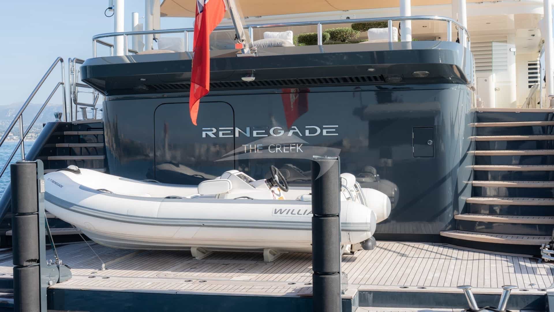 RENEGADE yacht available for charter. Built in 1992 with a charter price from €155,000 for up to 10 guests in 5 suites with a crew of 11.